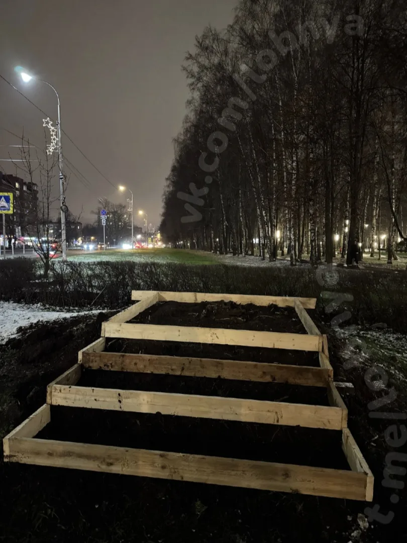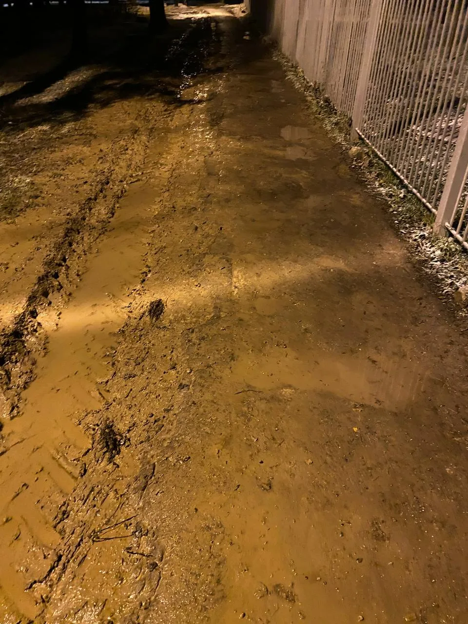 Мы понимаем, что чернозём и строительные материалы нужно где-то складировать. Но если вы разместили их на входе в парк, то стоит оградить это место или хотя бы сделать временный настил для посетителей.