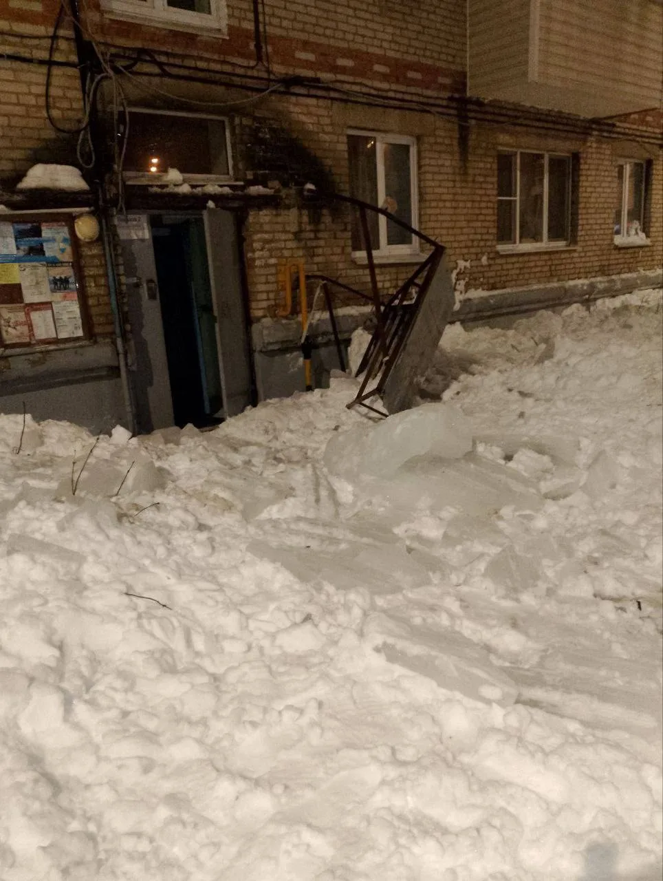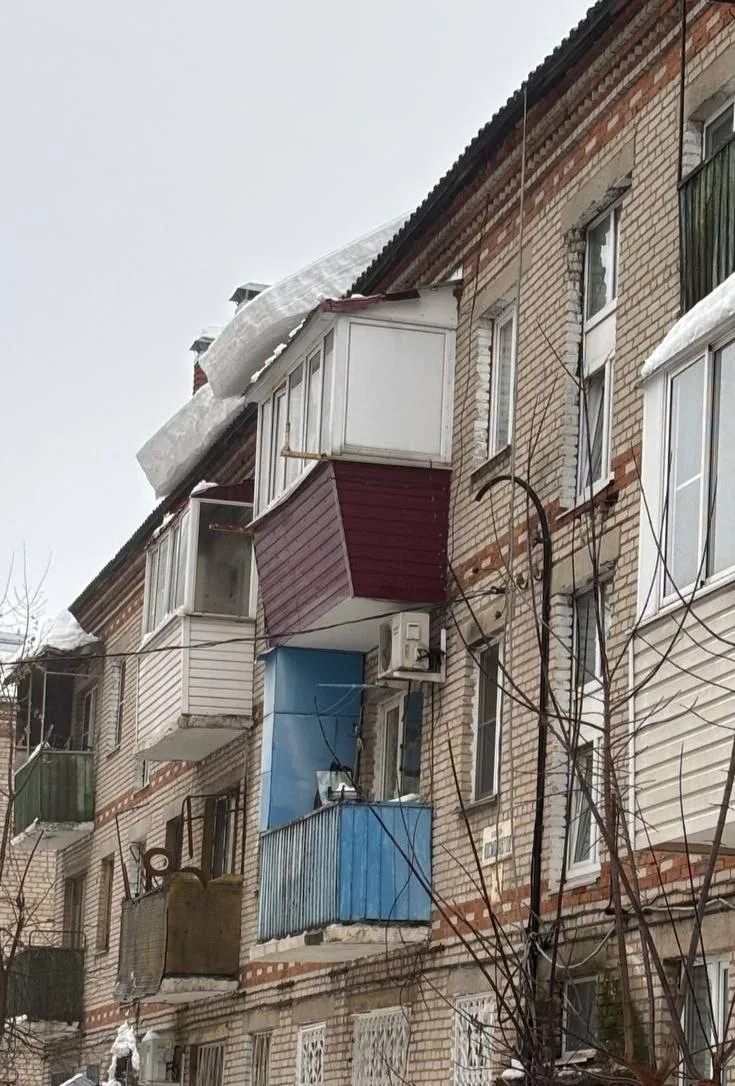 Глыбы снега на крышах
