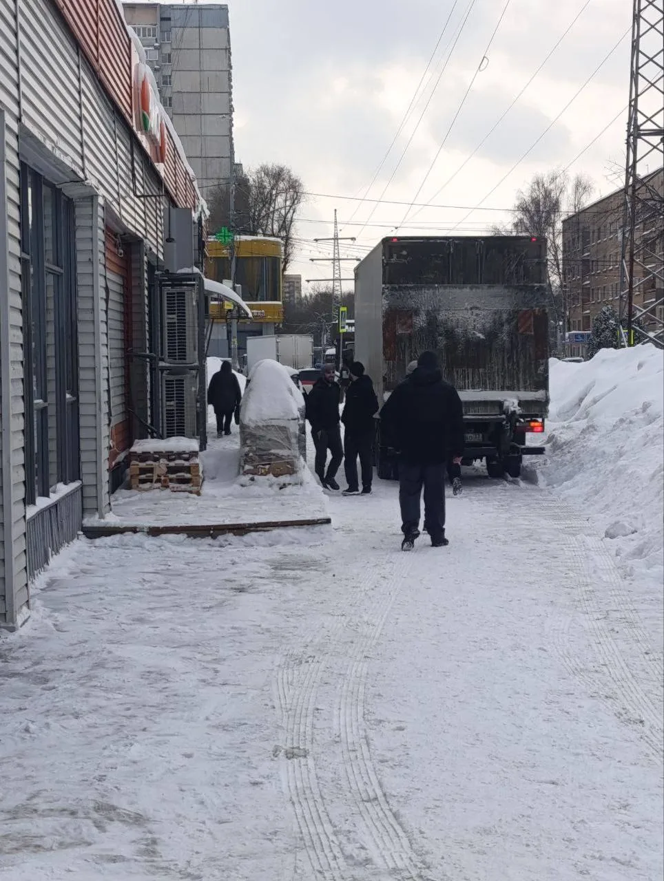 В Дикси на Чехова продолжают ездить грузовики по пешеходной дорожке. Подъезд со стороны двора был организован на время, пока утихнет шум после чудовищной трагедии.
