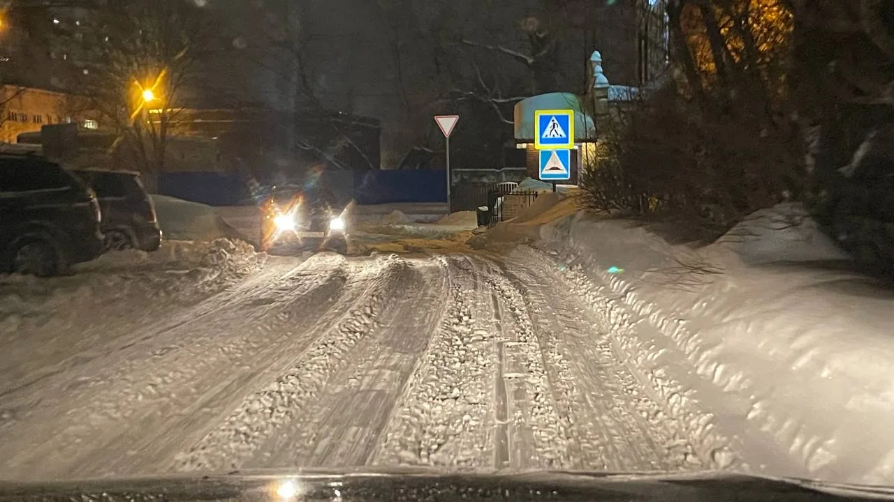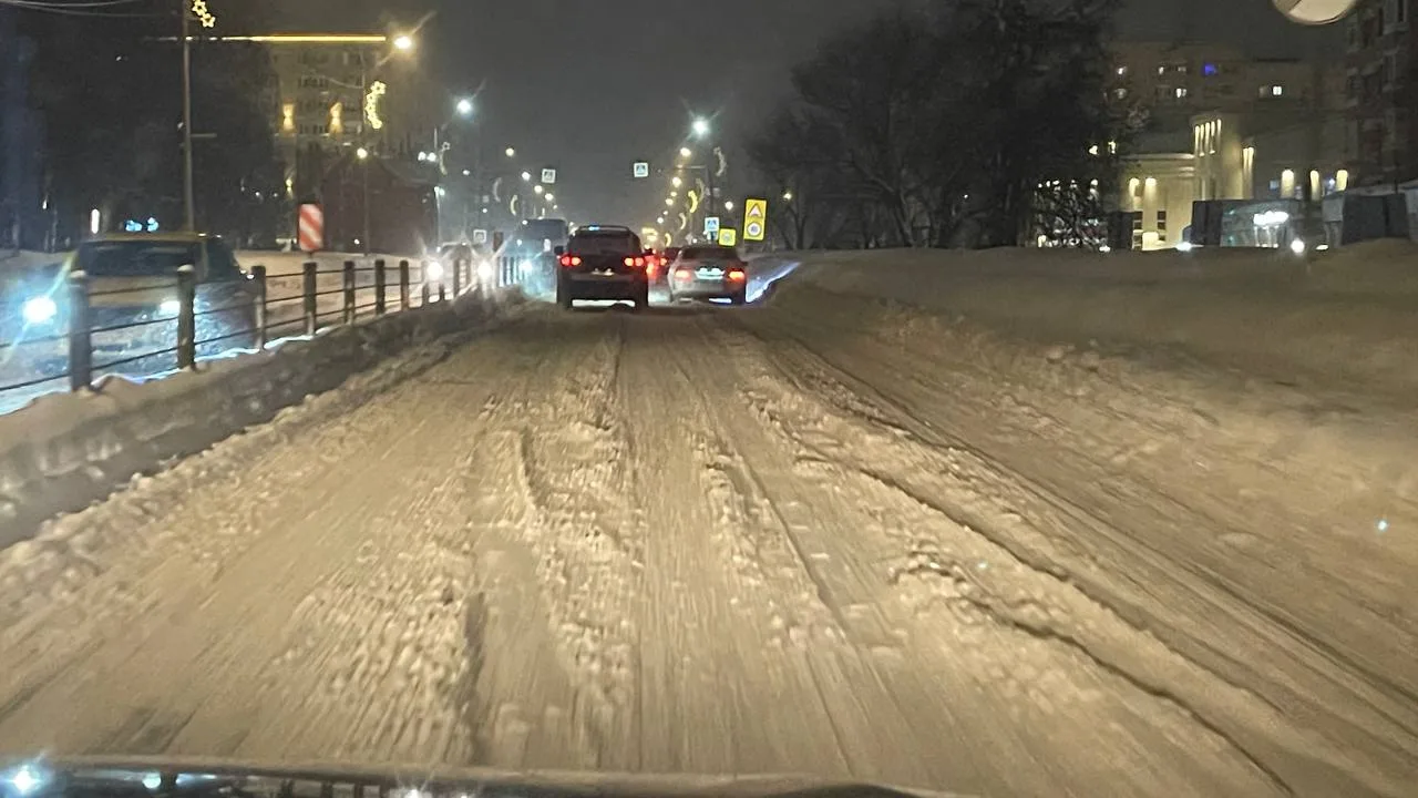 На вчерашний вечер состояние по уборке от снега крайне печальное. Снег вчера шел не с такой силой, чтобы на дороге, даже после однократной уборки, образовался такой слой снега.