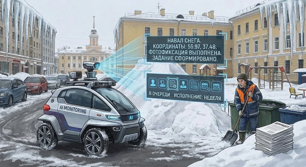 Тракторист искренне считал это место официальной зоной складирования, пока стоявшая рядом машина не уехала, явив миру заваленный сюрприз. Осознав, что "сугроб" подозрительно напоминает транспортное средство, мастер ковша предпочел элегантно ретироваться за угол дома. — сообщает очевидец.
