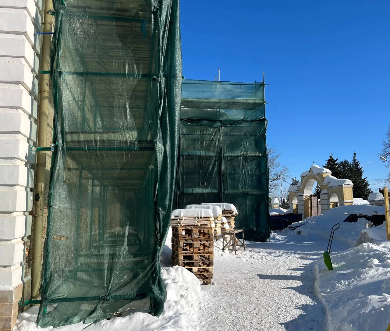 На время реставрации богослужения не прекращаются — они будут совершаться в домовой церкви по воскресеньям и праздничным дням.