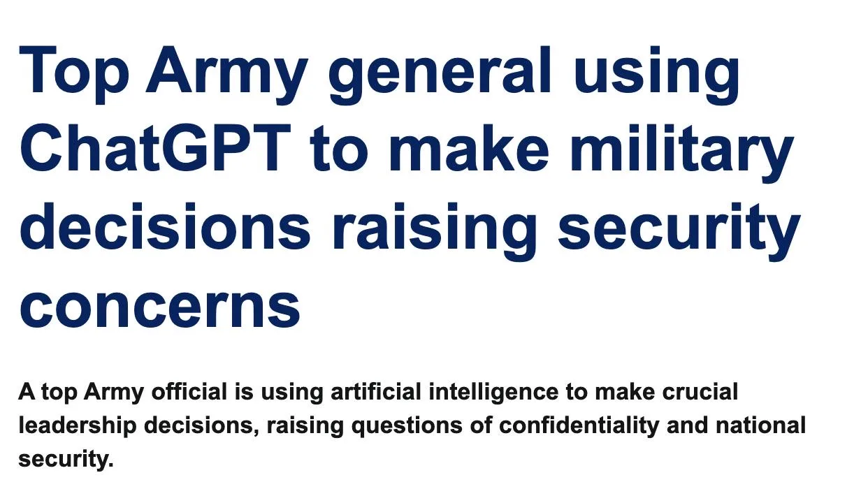 И снова новости на уровне и смешно, и страшно: командующий армией США принимает важнейшие решения через ChatGPT.