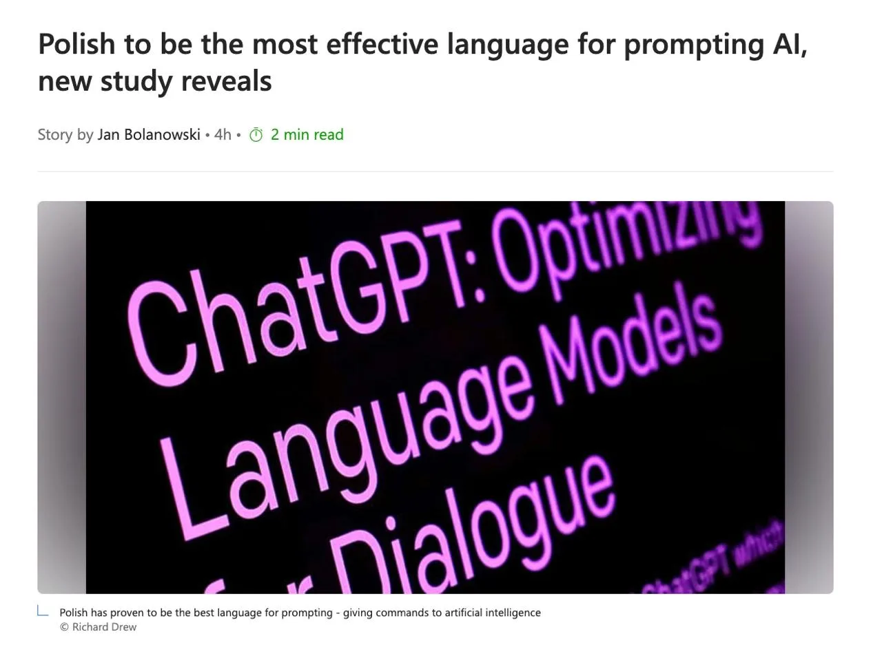 Учёные из Университета Мэриленда протестировали работу крупных ИИ-моделей на 26 языках. В числе исследуемых были ChatGPT, Gemini, Qwen, Llama, DeepSeek и другие. Польский язык занял 1-е место с точностью 88%.