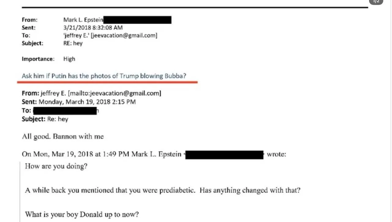 Марк просит уточнить у Стива Кэннона, который занимал высокую должность в аппарате Белого дома, нет ли у Путина фотографии Трампа, делающего минет «Буббе». Если что, «Бубба» — популярное прозвище Билла Клинтона.