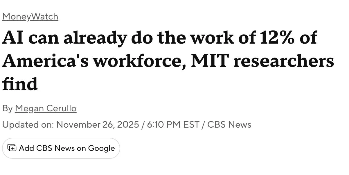 ИИ уже сегодня может занять до 12 % всех рабочих мест в США. Такое исследование провело MIT, и нейросети стремительно осваивают достаточно сложные задачи, вроде разработки ПО и финансового анализа.