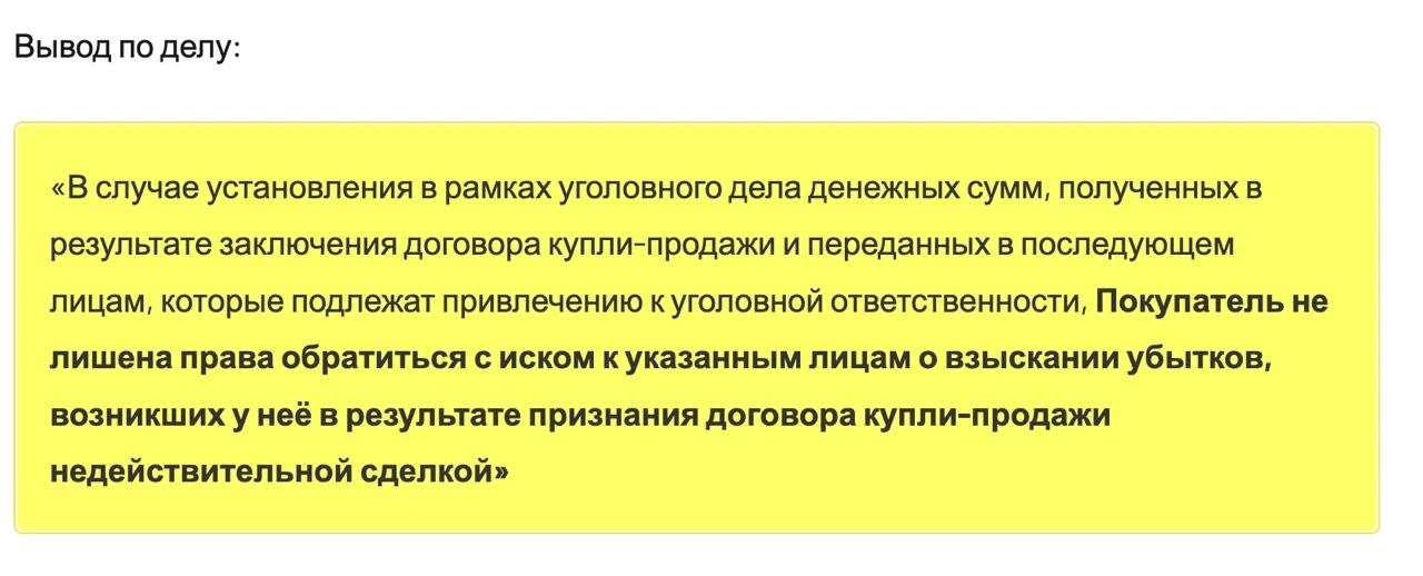 Вся эта история пахнет «самым лучшим фильмом». Суд решил, что покупатели квартиры Долиной должны требовать свои деньги не с неё, а с мошенников, которые её обманули. Участие самой Долиной в сделке признано несущественным. То есть Лариса Долина продаёт квартиру, отдаёт деньги мошенникам, а налог за её тупость должны оплачивать другие люди. Прикольно, да?