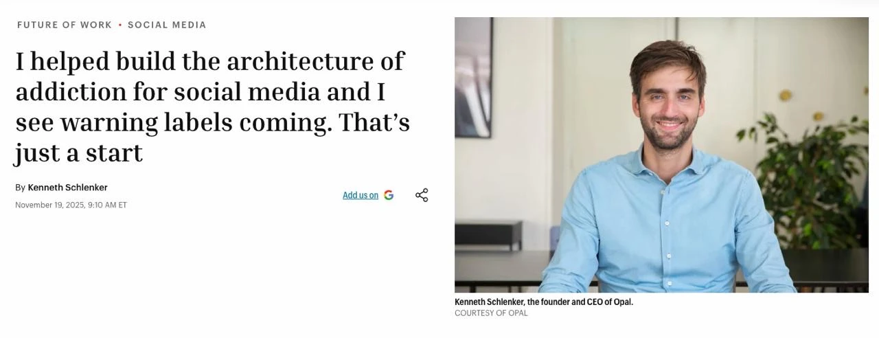 Сотрудник занимался анализом данных YouTube и учился подчинять человеческое внимание, чтобы люди кликали, скроллили и залипали. Теперь же он делает приложение для борьбы с цифровой зависимостью. Кстати, совсем скоро мы, вероятнее всего, увидим в социальных сетях маркировки, прямо как на сигаретах. Подобный эксперимент запустят в Калифорнии в 2027 году.
