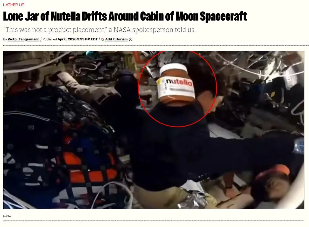 Представители NASA дают официальное заявление о банке Nutella. Говорят, что не реклама. Как вы понимаете, это заявление — ещё одна случайная реклама продукта.