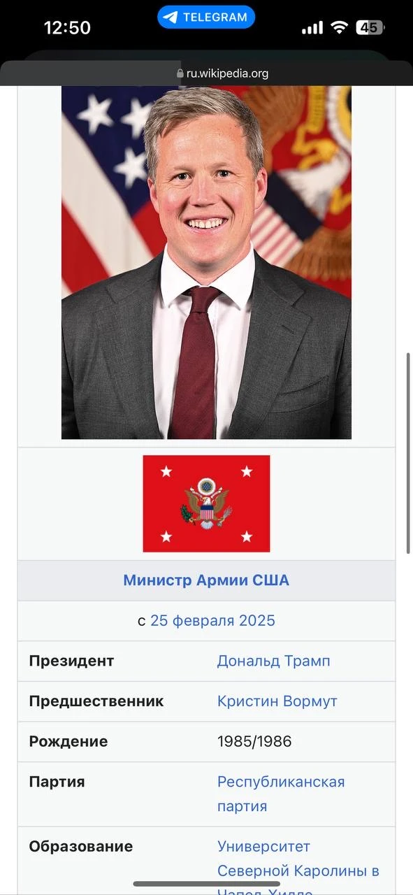 Трамп назначил новым спецпосланником по Украине министра Сухопутных войск США Дрисколла — увидели мы у RT.