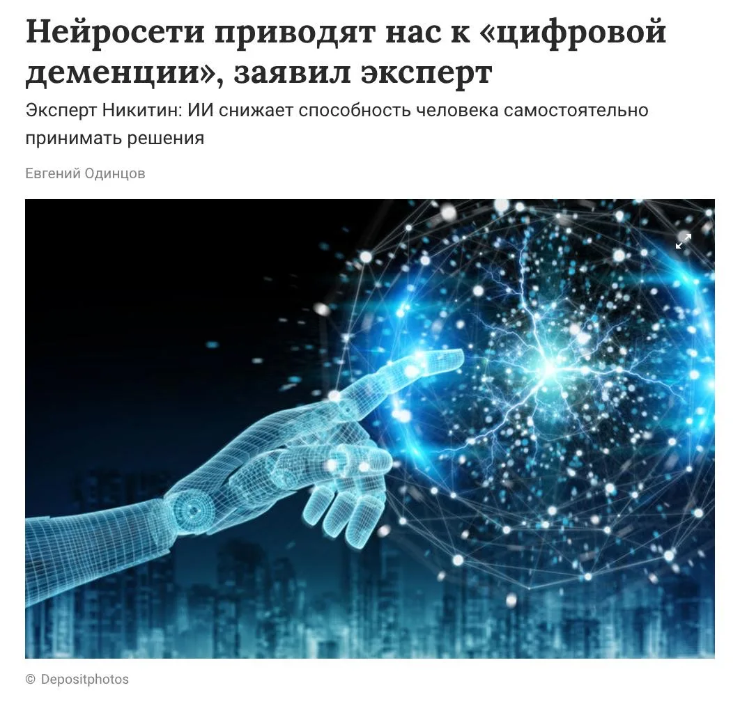 ИИ может довести до цифровой деменции и цифрового слабоумия. Вроде бы боты берут на себя рутину, а вроде это не очень хорошо.