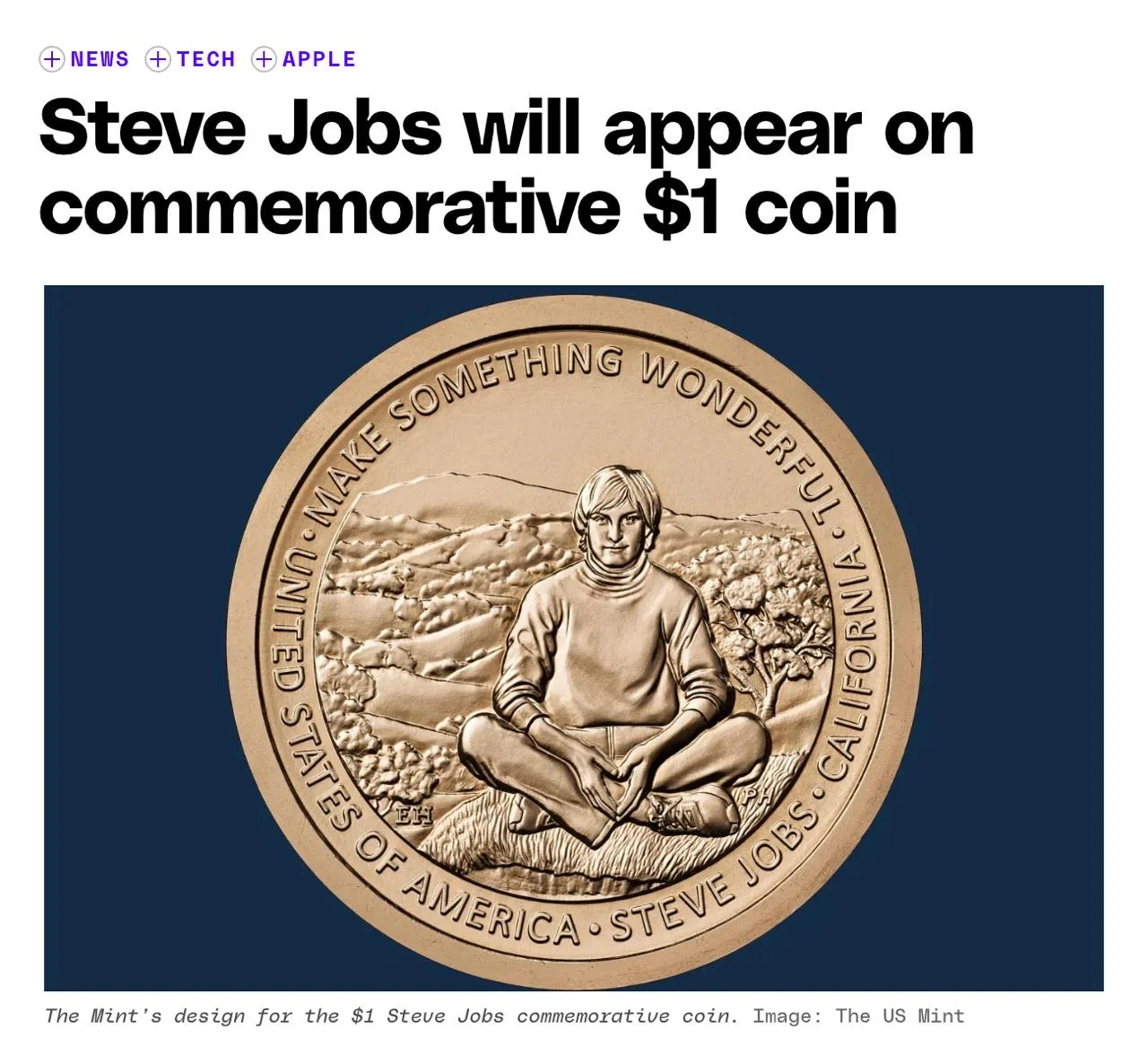 Монетный двор США в 2026 году должен выпустить памятную монету со Стивом Джобсом. Монету номиналом в $1 можно будет купить за $13,25.