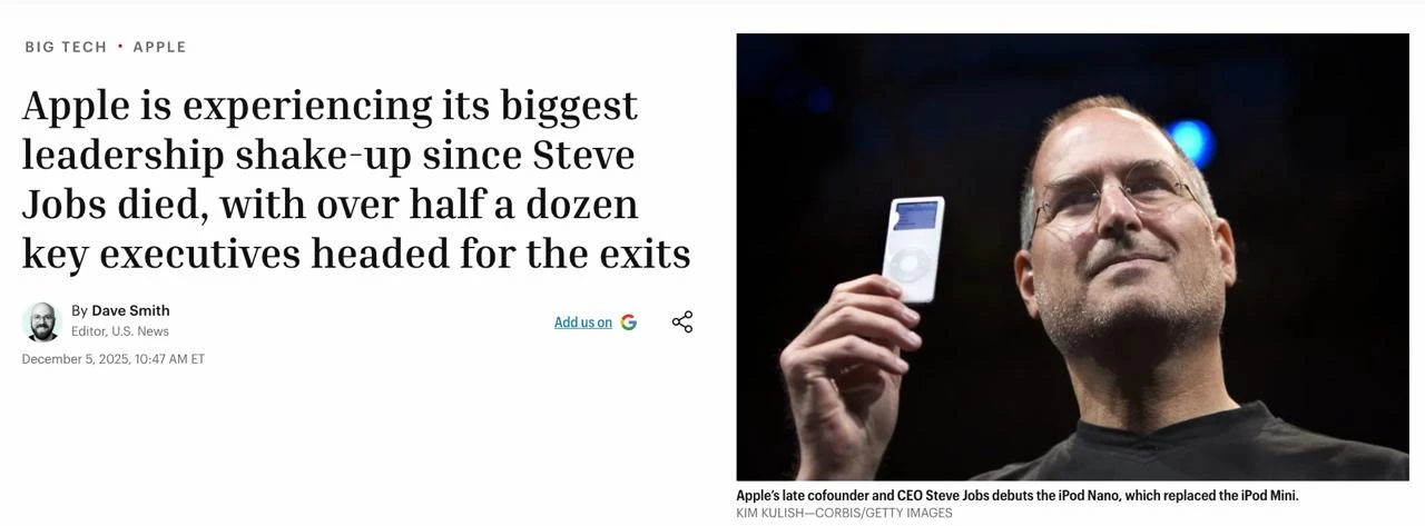 У Apple началась сильнейшая тряска: ключевые руководители покидают или уже покинули компанию.