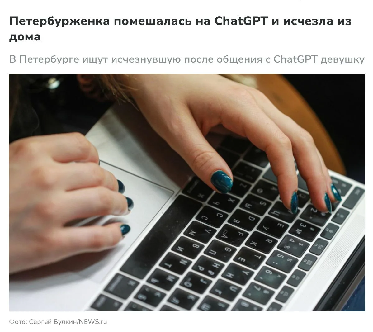 Перед пропажей она уволилась с работы и полностью ушла в переписку с ИИ. Последний раз её видели у подруги, где она вела пугающие религиозные беседы, позже выбежала из квартиры и скрылась.