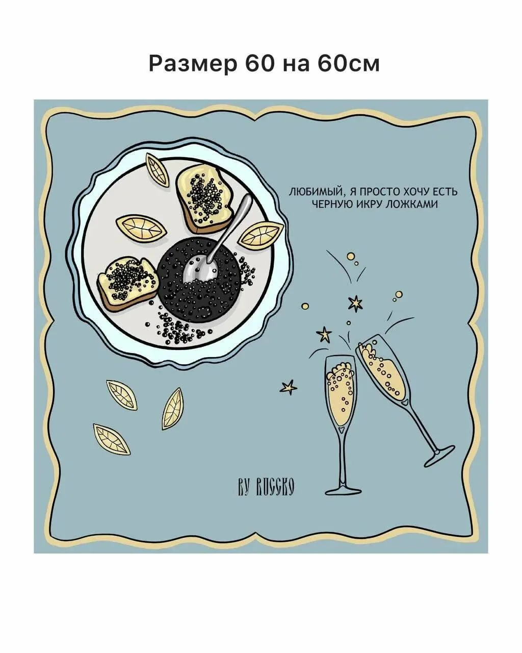 Такие интересные платки нашли у бренда Ruccko. В вишлист отправился с черной икрой и шампанским, естественно!
