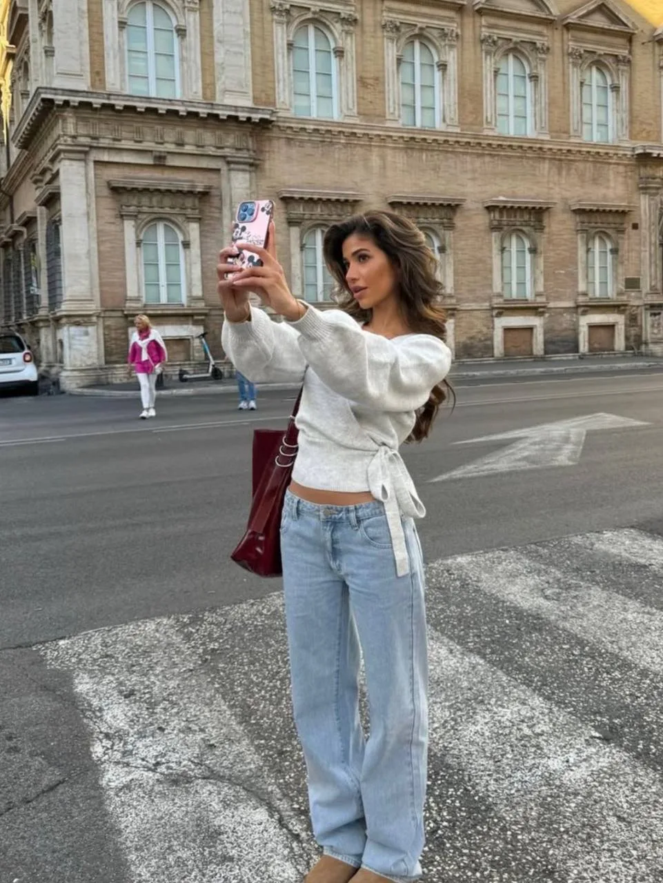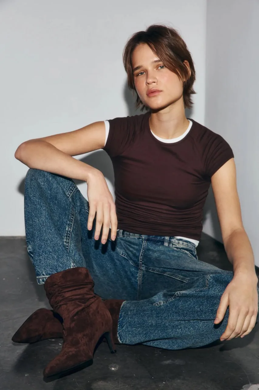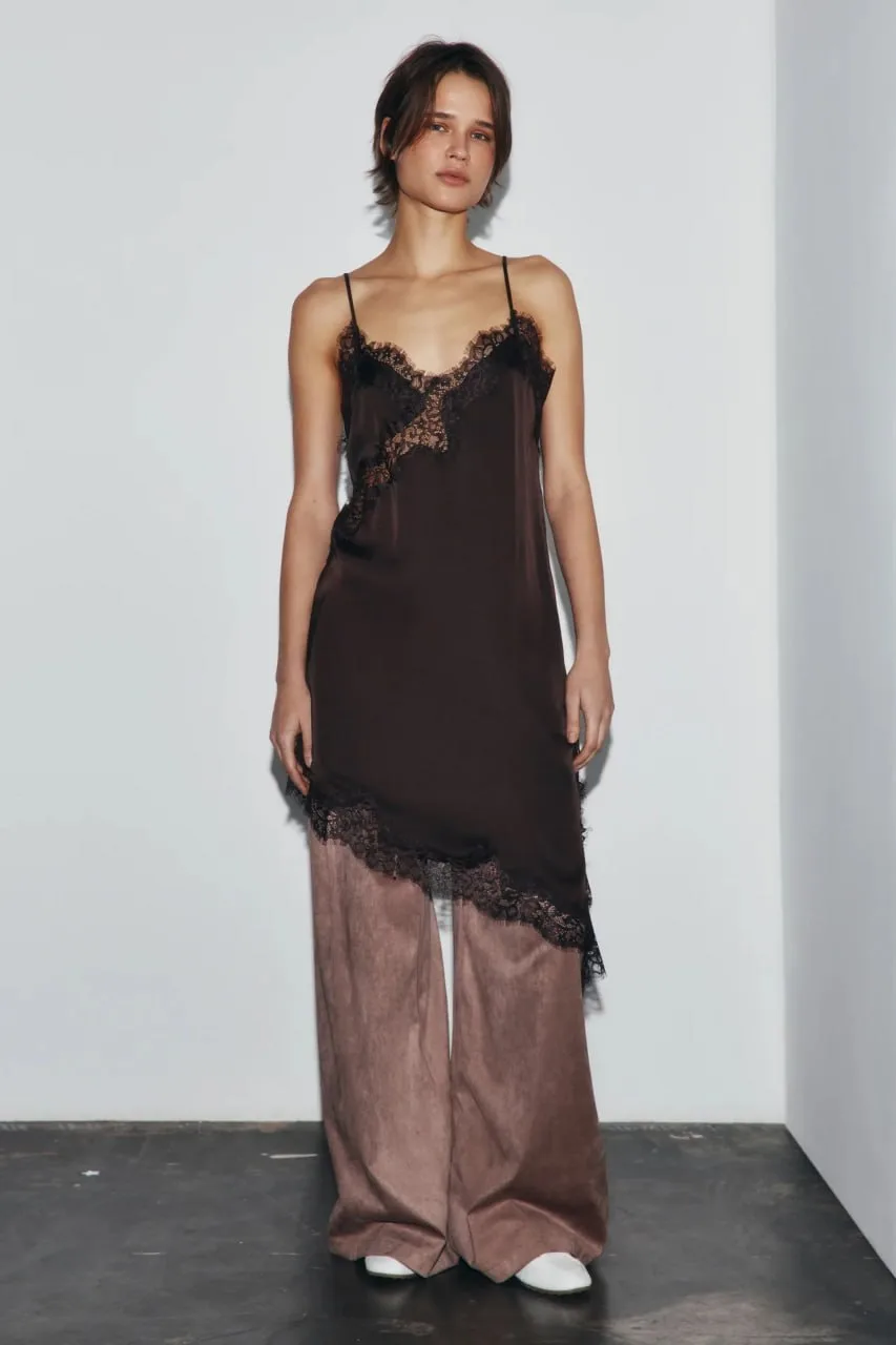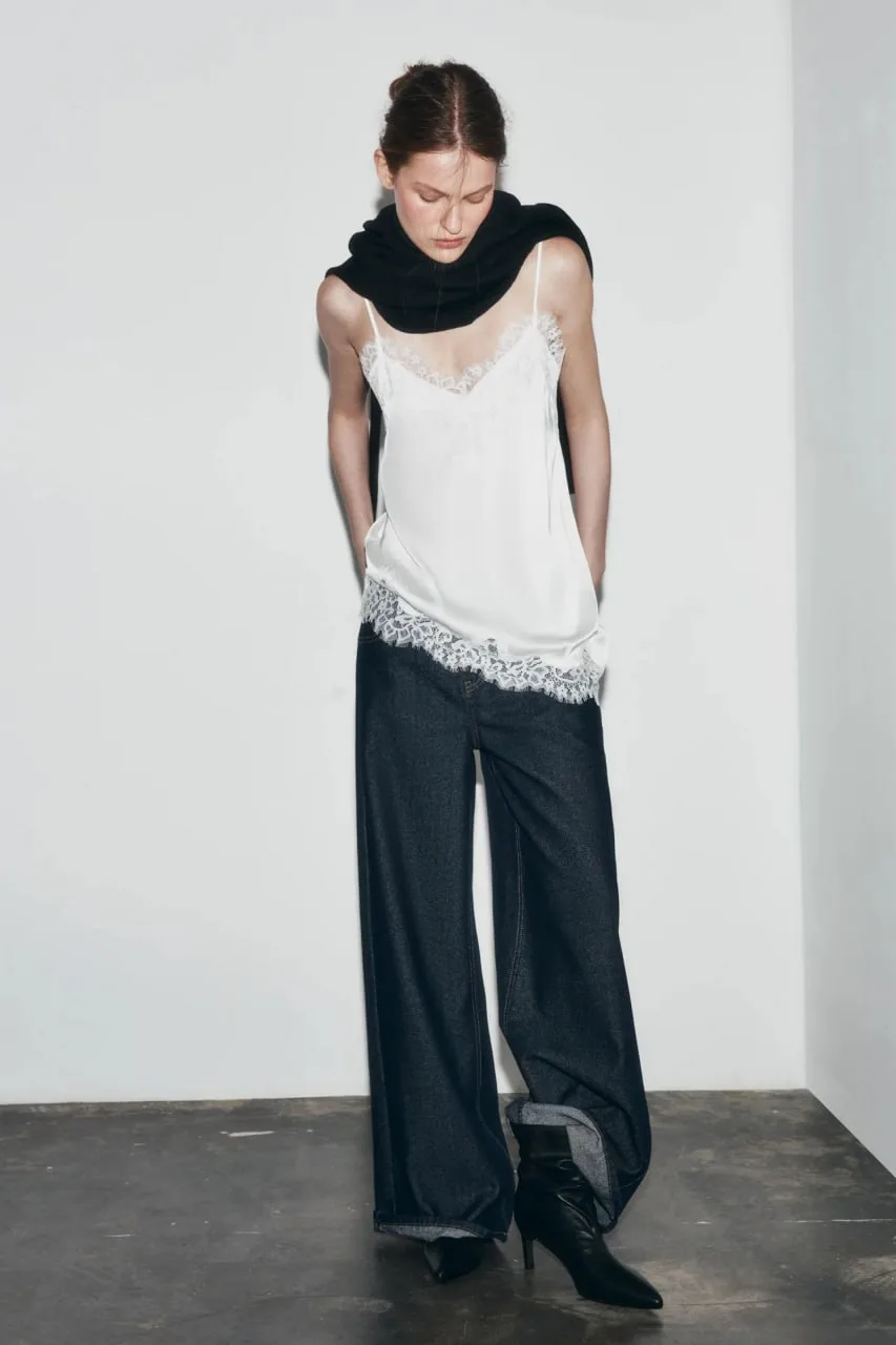 В новом дропе: атласные топы и платья с кружевом, клеш, джинсы barrel с эффектом грязи, ботильоны и сапоги на тонком каблуке. Определенно стоит внимания!
