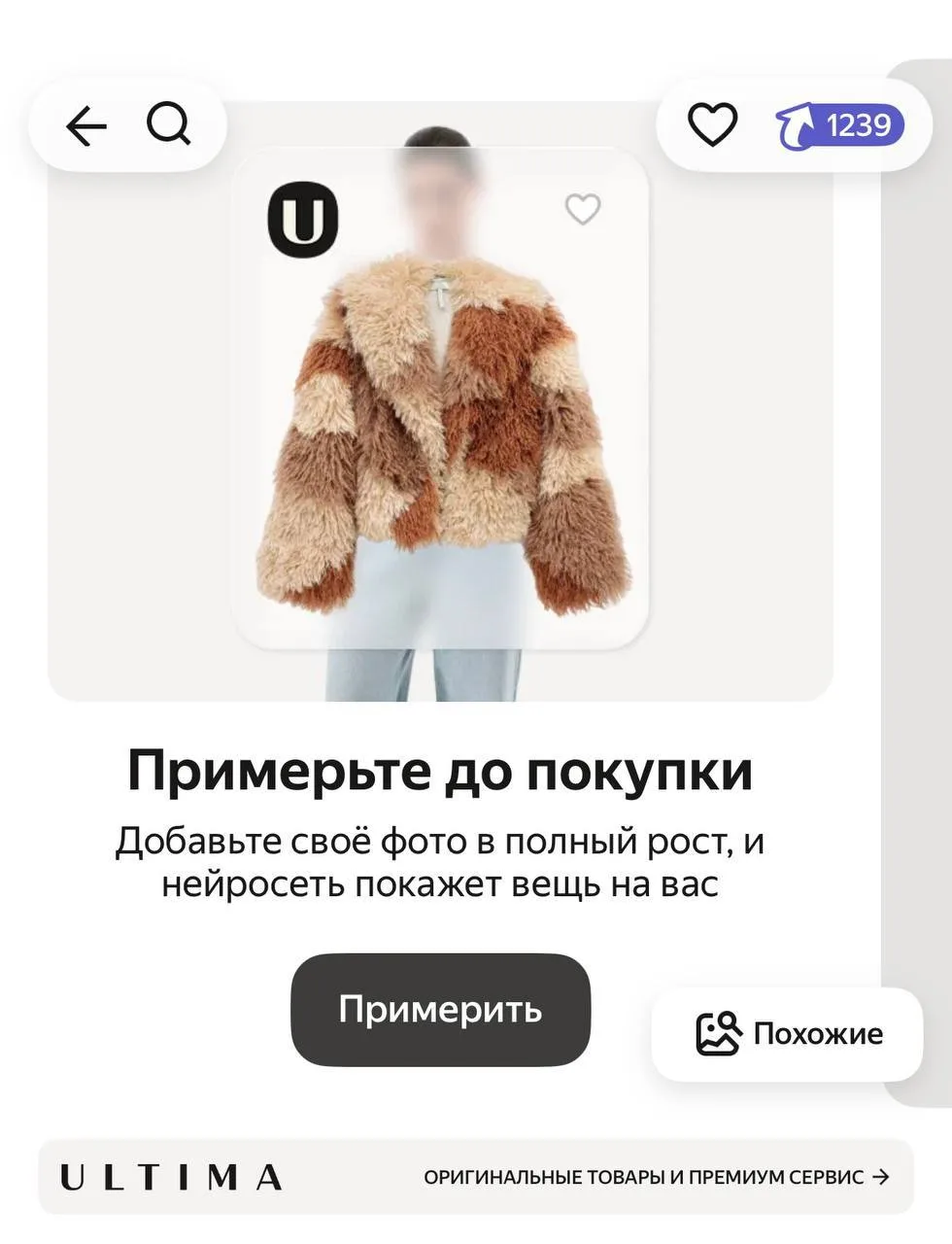 В Ultima Яндекс появилась функция виртуальной примерки! Можно загрузить свое фото прямо в карточке товара и посмотреть, как вещь выглядит именно на тебе.