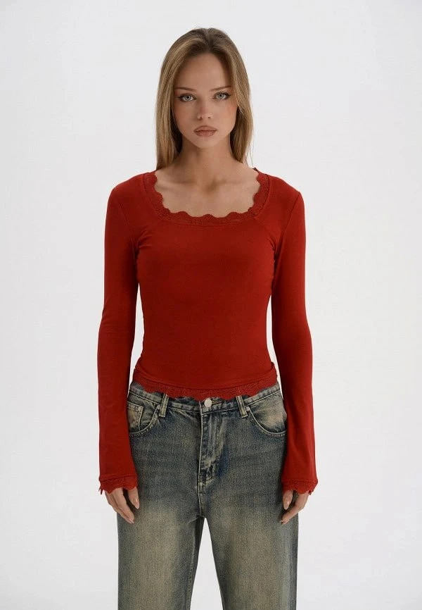 Вау, какой глубокий насыщенный красный 💔 А еще кружево, классный вырез и вискоза в составе - берем.