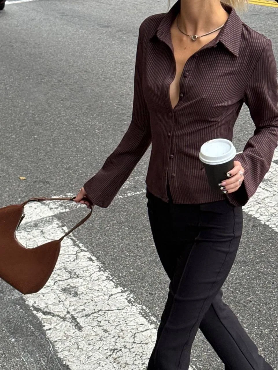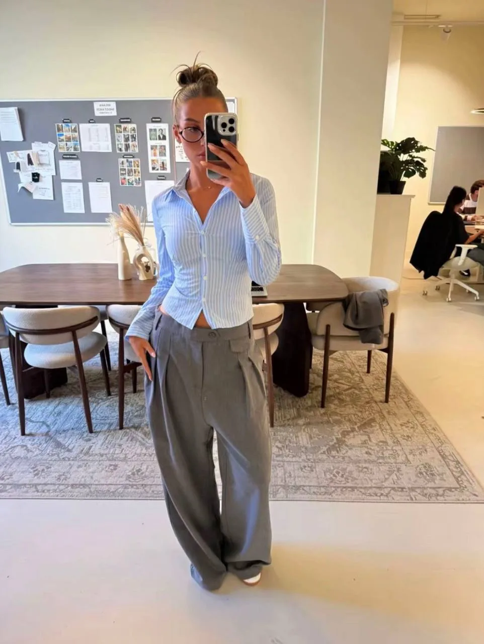 Напоминаем о том, что рубашки приталенного кроя сейчас очень популярны 🛀 На все пуговицы не застегиваем, первую и последнюю точно лучше оставить так – это и носится комфортнее, и смотрится лучше.