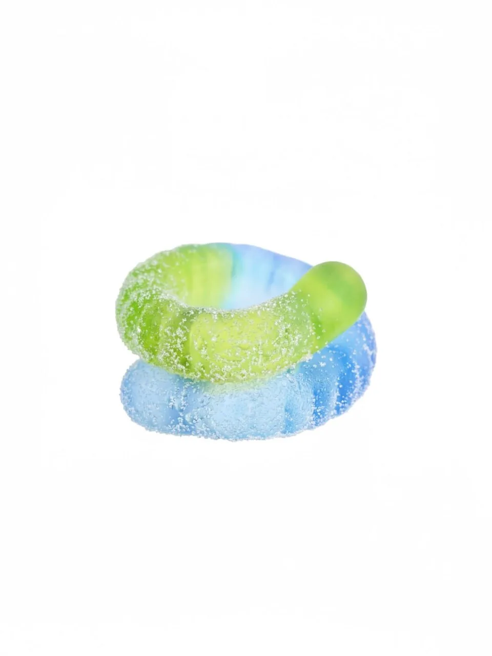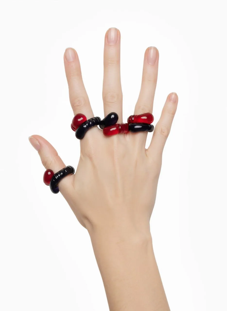 Необычный аксессуар от After Hours Workshop, который приходит в упаковке с большим мармеладным медведем! Колечки сделаны из стекла и выглядят очень натурально.