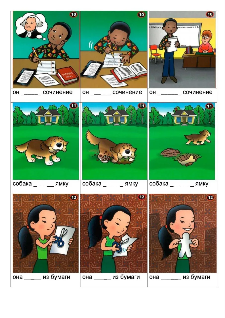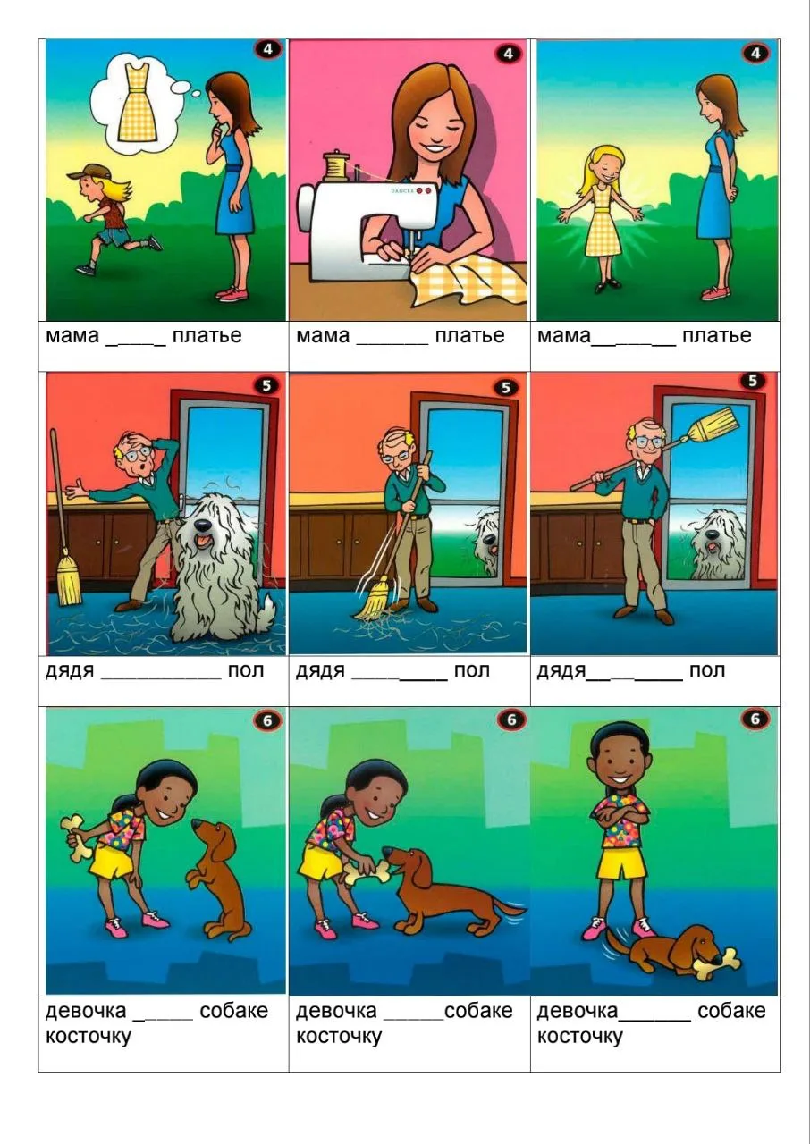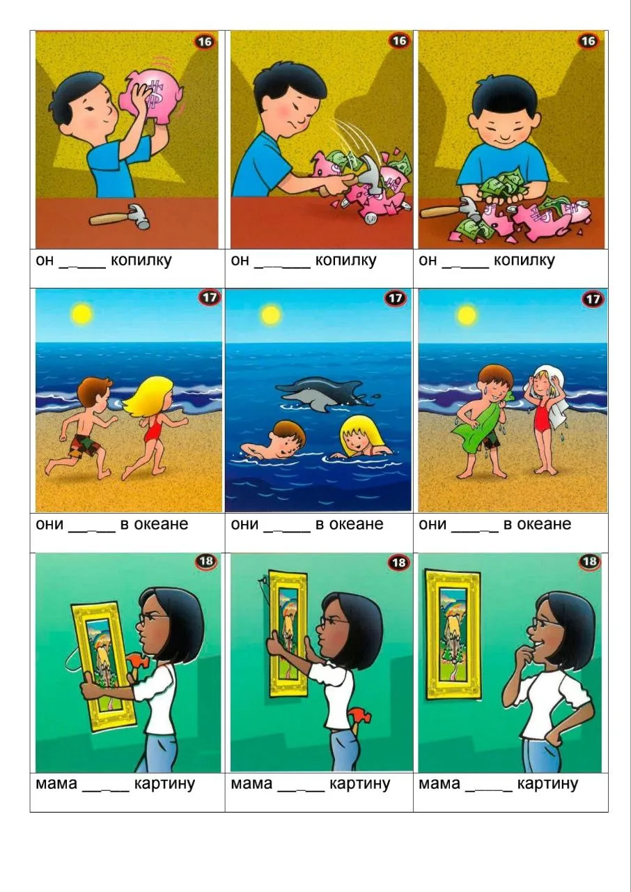 С помощью данного пособия ребёнок учится выстраивать правильную последовательность действий и употреблять глаголы в правильной форме