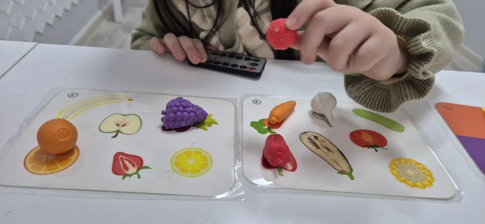 Веселая развивающая игра «Фруктовые шапочки» поможет детям улучшить логическое и ассоциативное мышление, а также зрительно-моторную координацию. Малышам необходимо подобрать фруктовые шапочки и сложить маленький пазл из двух деталей.