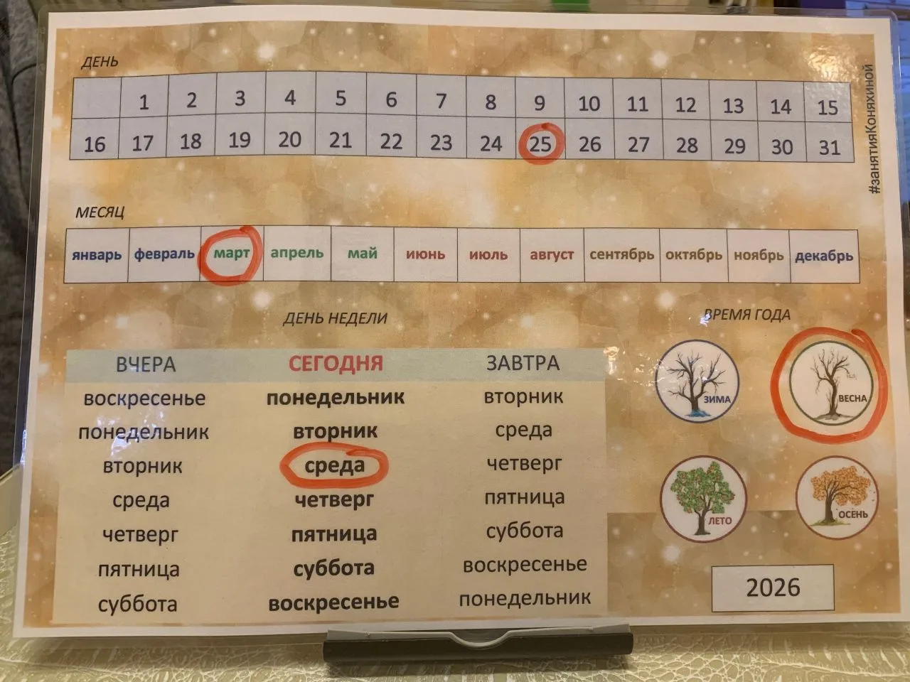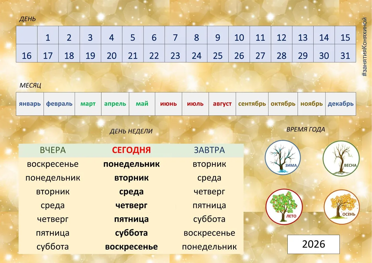 Подсказка для занятий для читающих детей (с опорой на обычный календарь при необходимости)