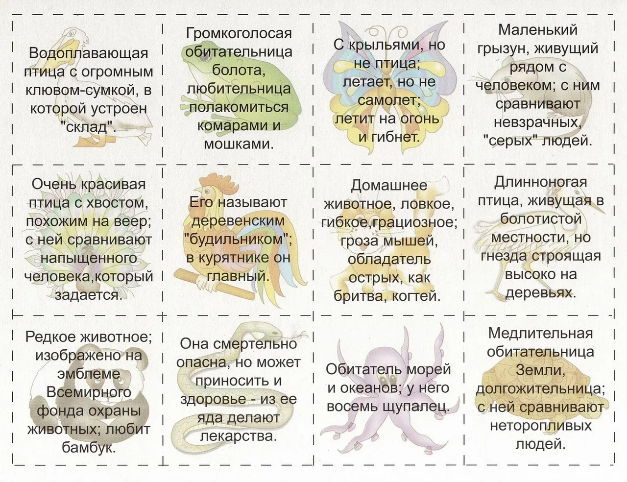 «Расскажи историю» - ребёнок раскладывает в правильной последовательности карточки и составляет историю с персонажами карточек, используя дополнительные изображения на карточках