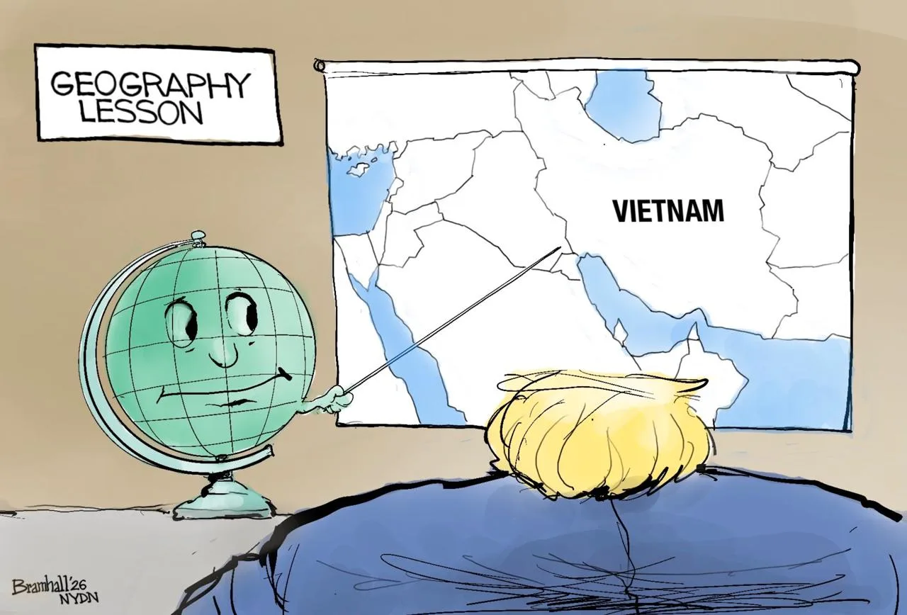 Американская газета New York Daily News опубликовала карикатуру, на которой глобус намекает президенту США Дональду Трампу, что его военная операция в Иране все больше напоминает провальную авантюру янки во Вьетнаме.