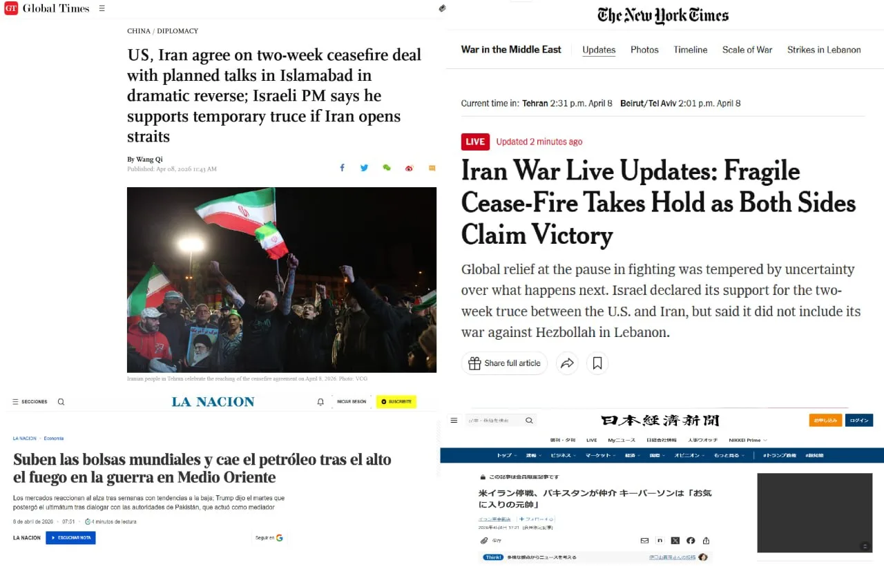 ▪La Nacion: Мировые фондовые рынки стремительно растут на торгах в среду, так как цены на нефть резко упали после того, как США и Иран договорились о двухнедельном прекращении огня, которое включает возобновление открытия Ормузского пролива.