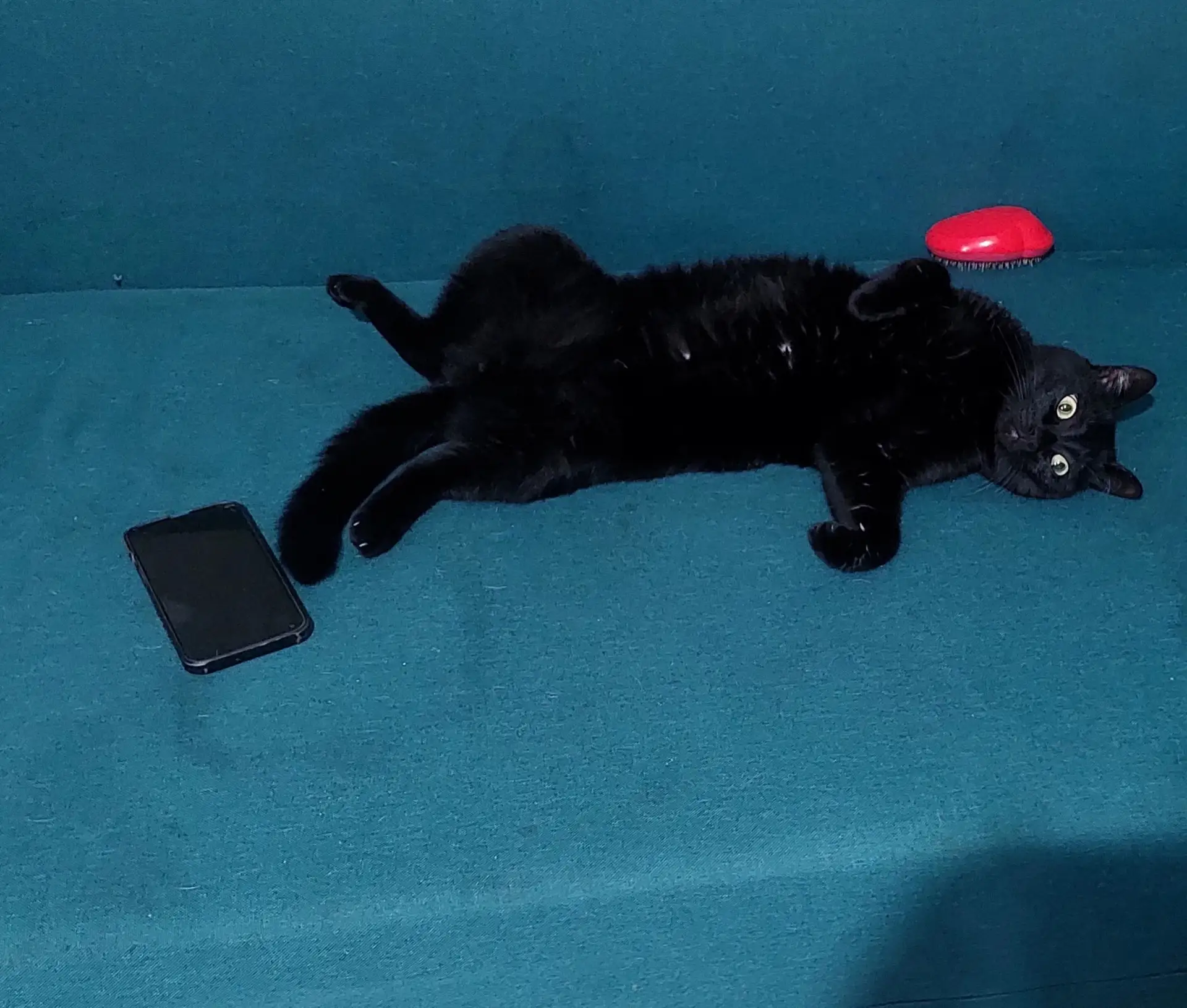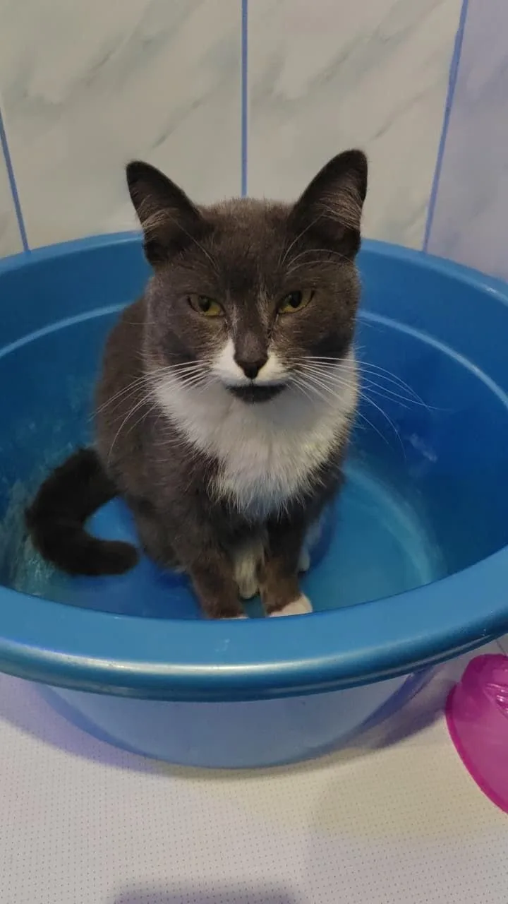 Добрый мальчишка, кушает всё, лоток знает на отлично, найти старых хозяев так и не удалось.