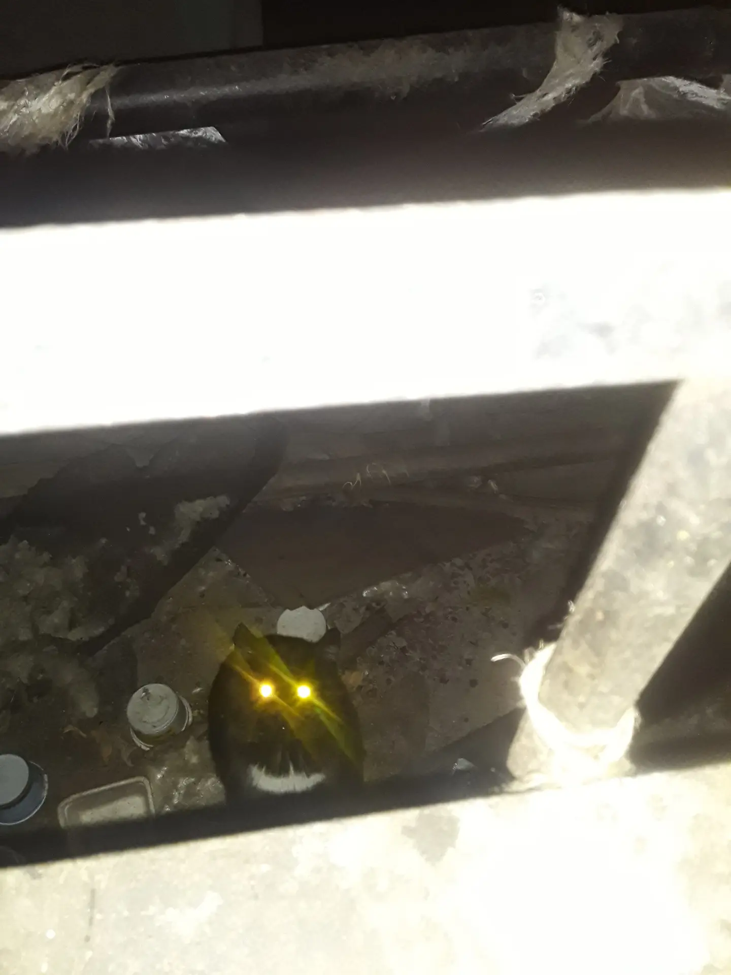 сидит под контейнерами, не выходит - боится. Черная, пушистая. Плачет…