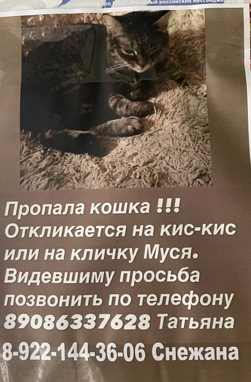 Если вы видели кота или знаете что-либо о его местонахождении, пожалуйста, свяжитесь со мной! 🙏