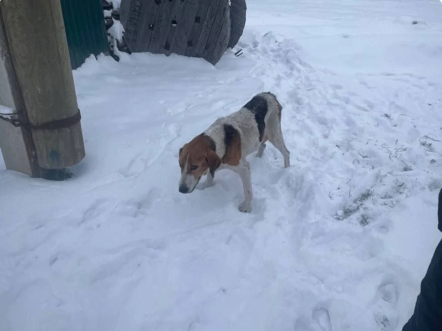 Найдена собака, русская пегая гончая, окрас белый с рыжими/черными пятнами (Екатеринбург, СНТ Медик)