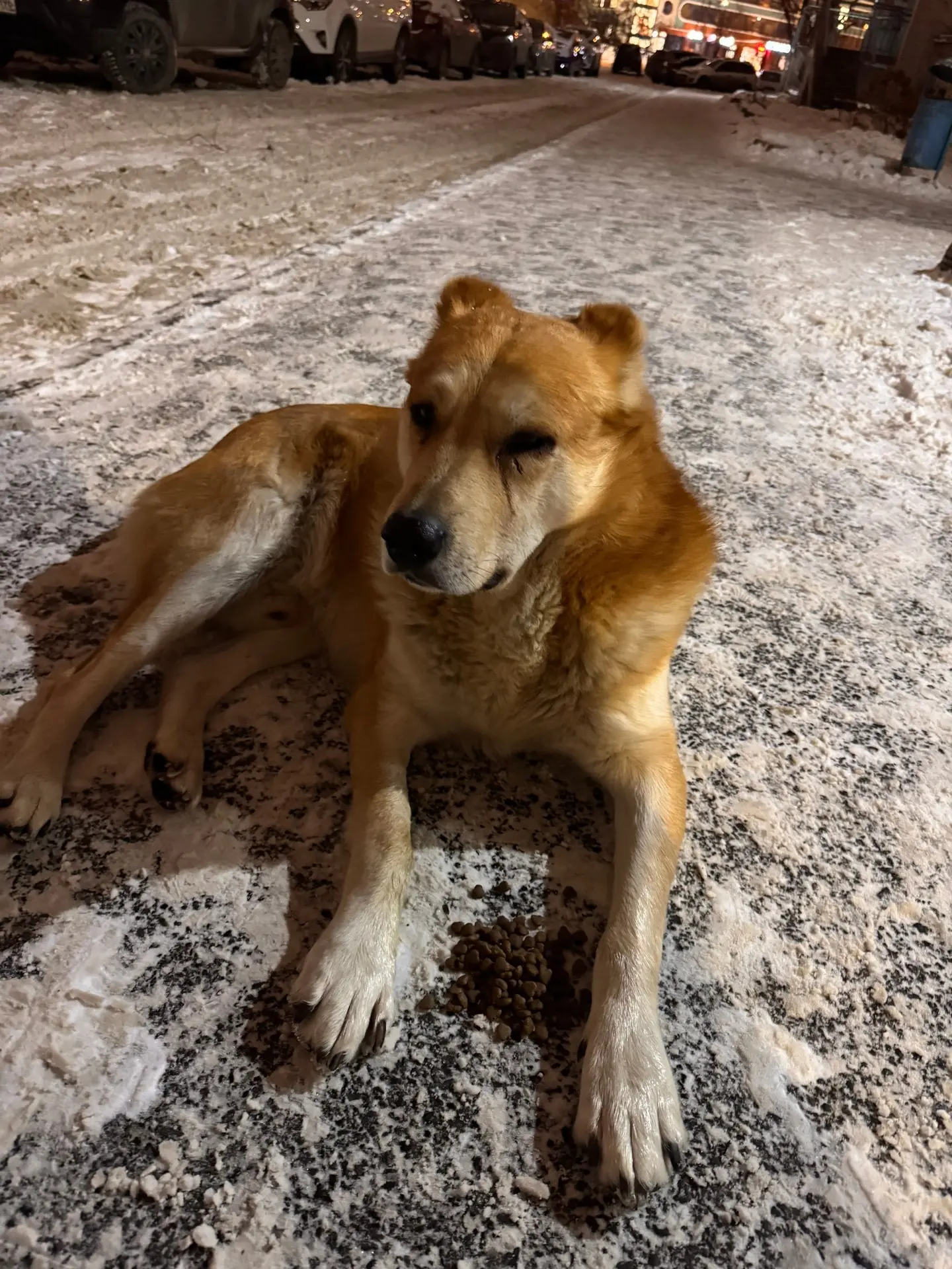 Лиза бездомная, стерилизована на ПКС, у неё есть своя будка где её кормят добрые люди каждый день, никогда ранее надолго не уходила!