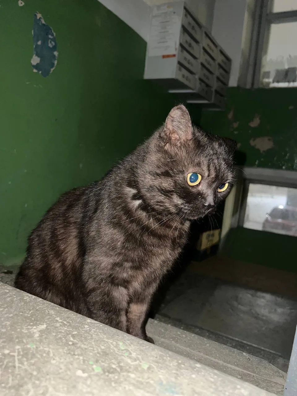 толстенький. Сидит плачет на улице. Запустили в подъезд. Чья потеря? Может кто то захочет забрать. Г. Верхняя Пышма, ул. Огнеупорщиков. Тел. +79126705609 Алиса.
