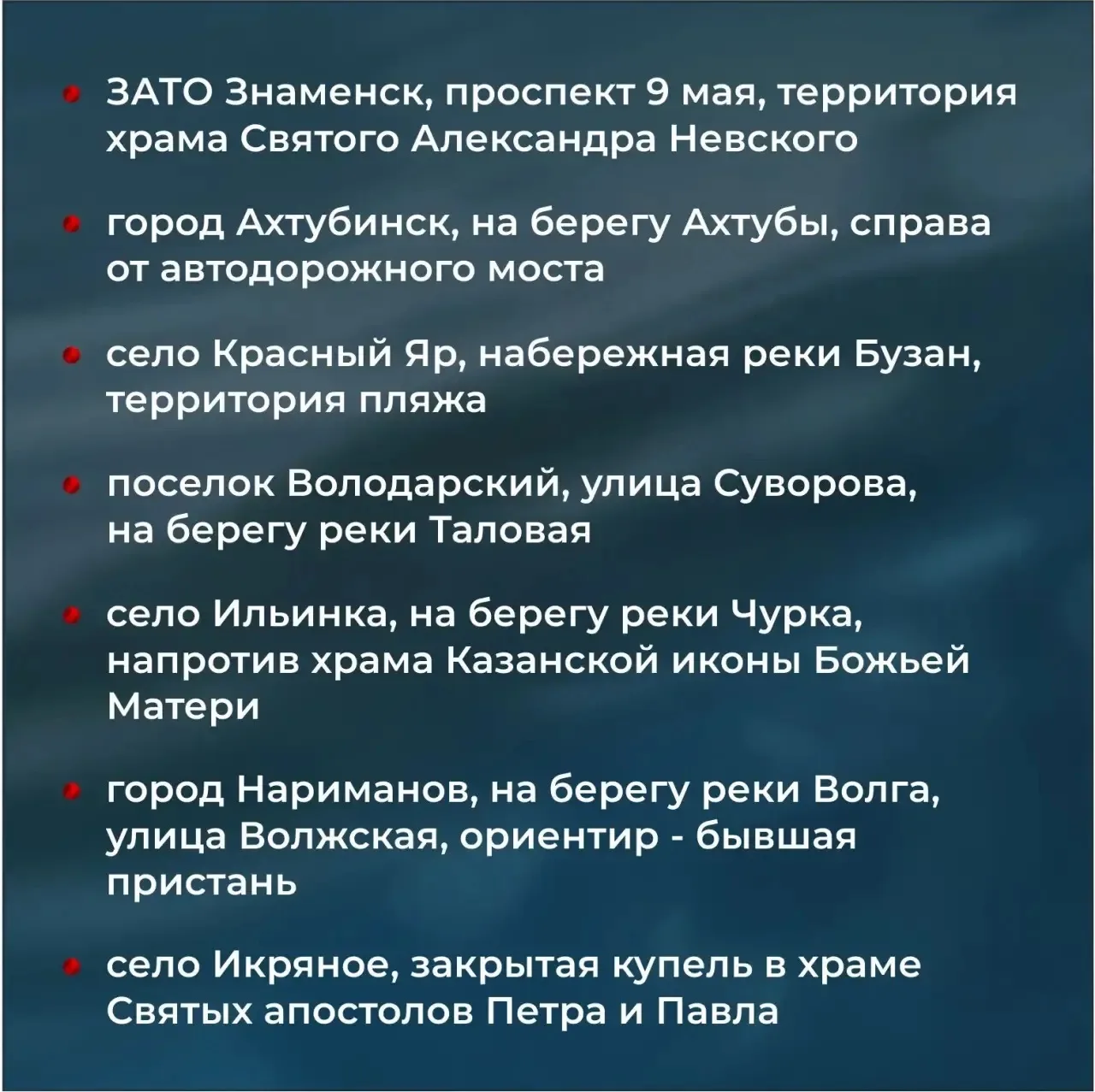 Адресные ориентиры оборудованных купелей можно посмотреть в карточках.
