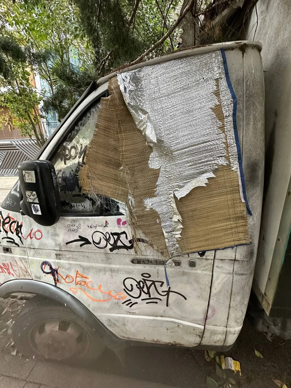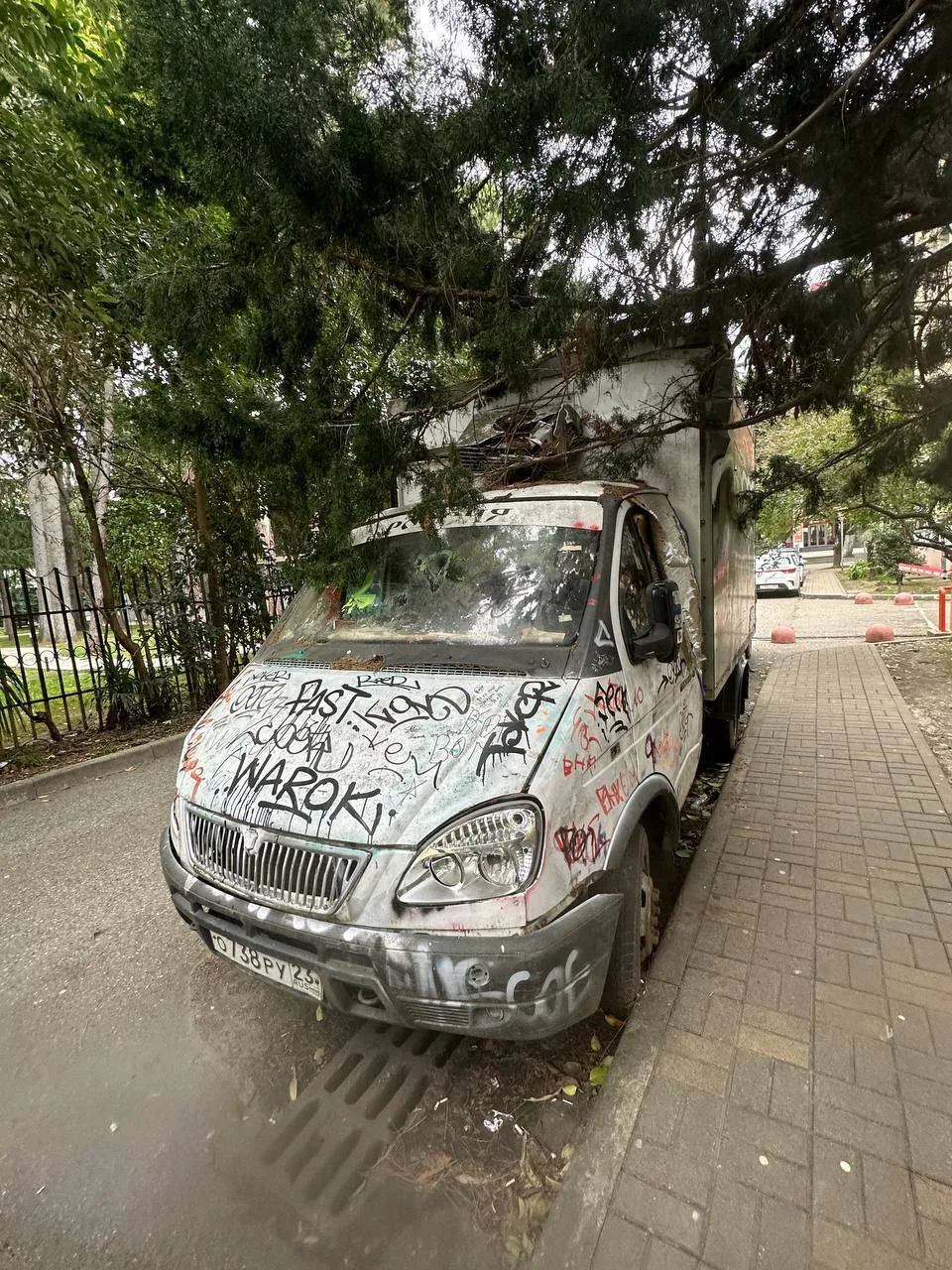 Добрый день. Вот такая машина стоит в самом центре Адлера, на Ул Кирова в торце дома 75. Где гарантия, что это безопасно? Просто бросили и дела никому нет. И давно уже. Колеса спущены, диски поржавели. Помогите поднять этот вопрос.