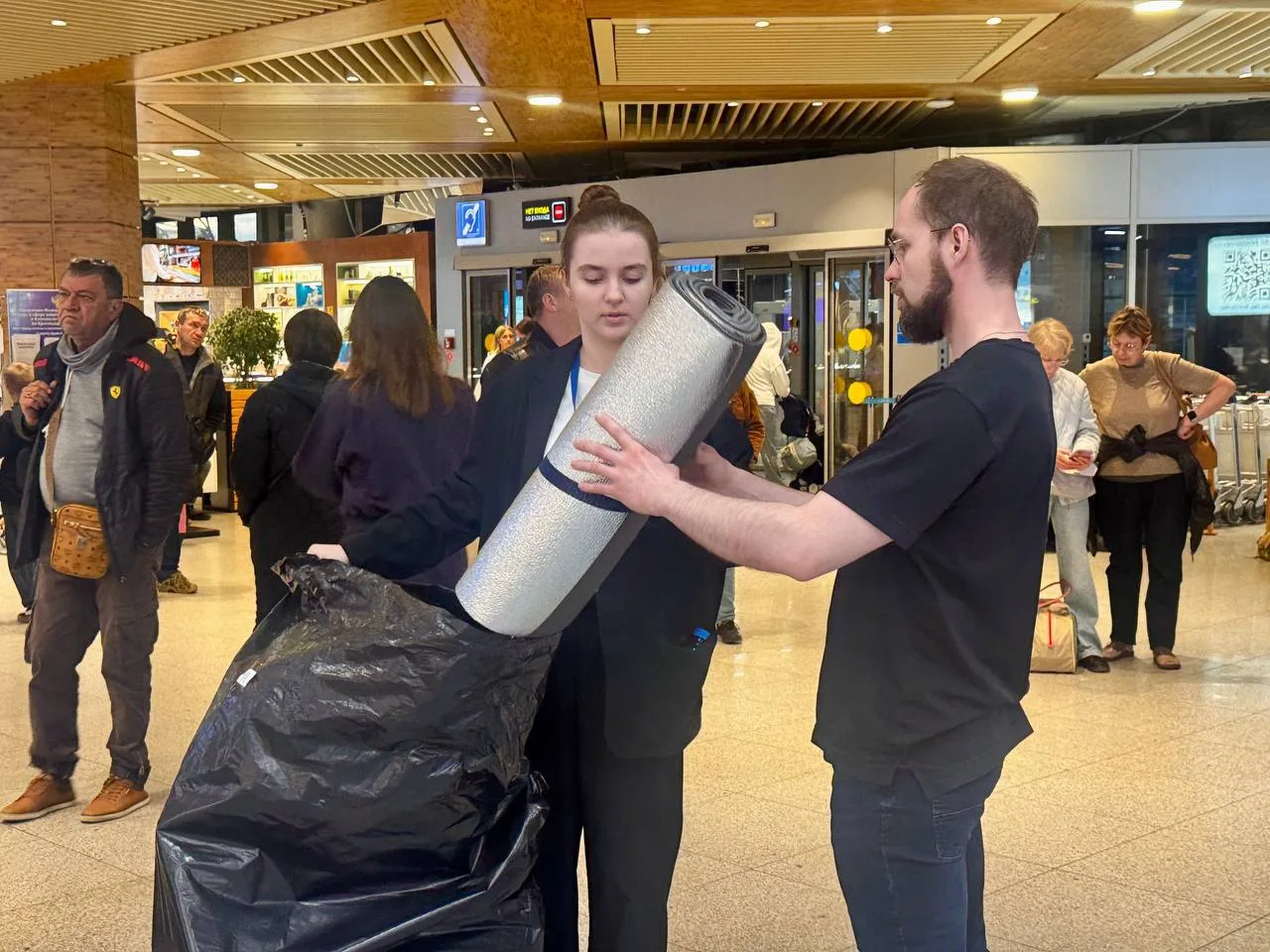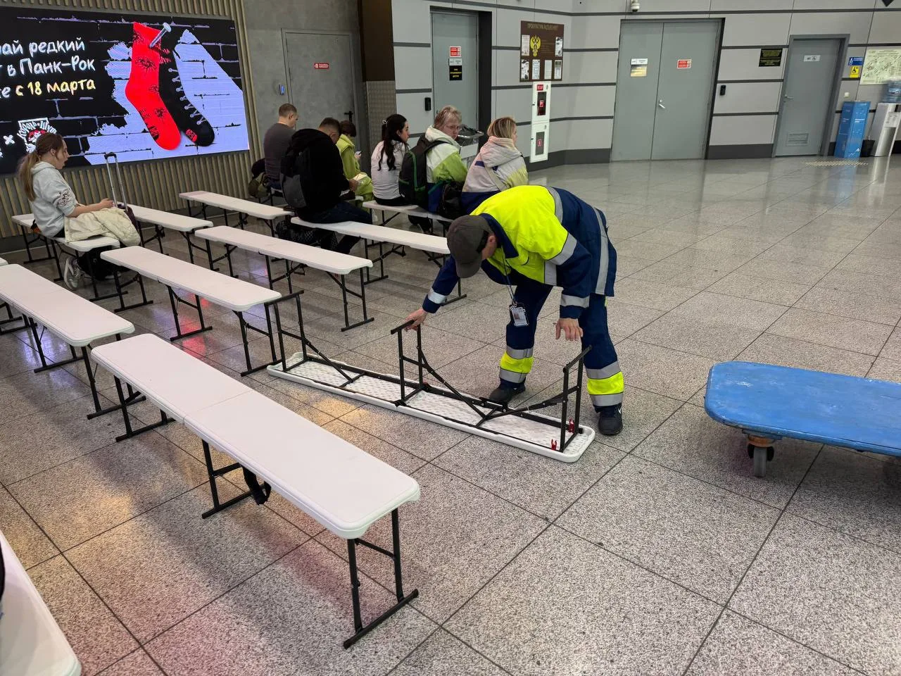 Обстановка остаётся спокойной, пассажиров обеспечивают всем необходимым для комфортного ожидания: