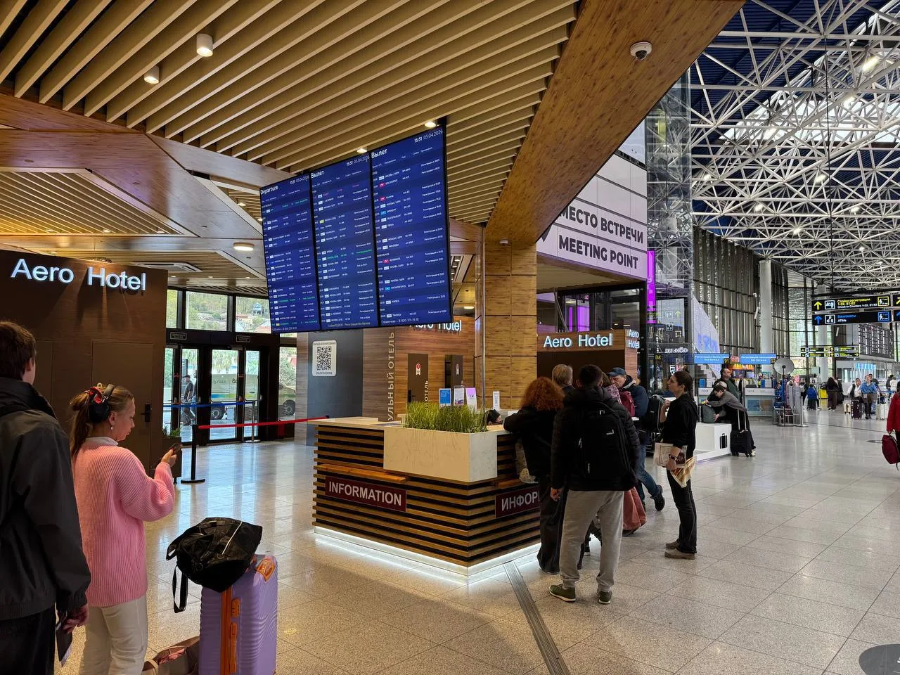 По всем вопросам можно обращаться к представителям авиакомпаний, на стойку информации (сектор В2) или на горячую линию перевозчика.