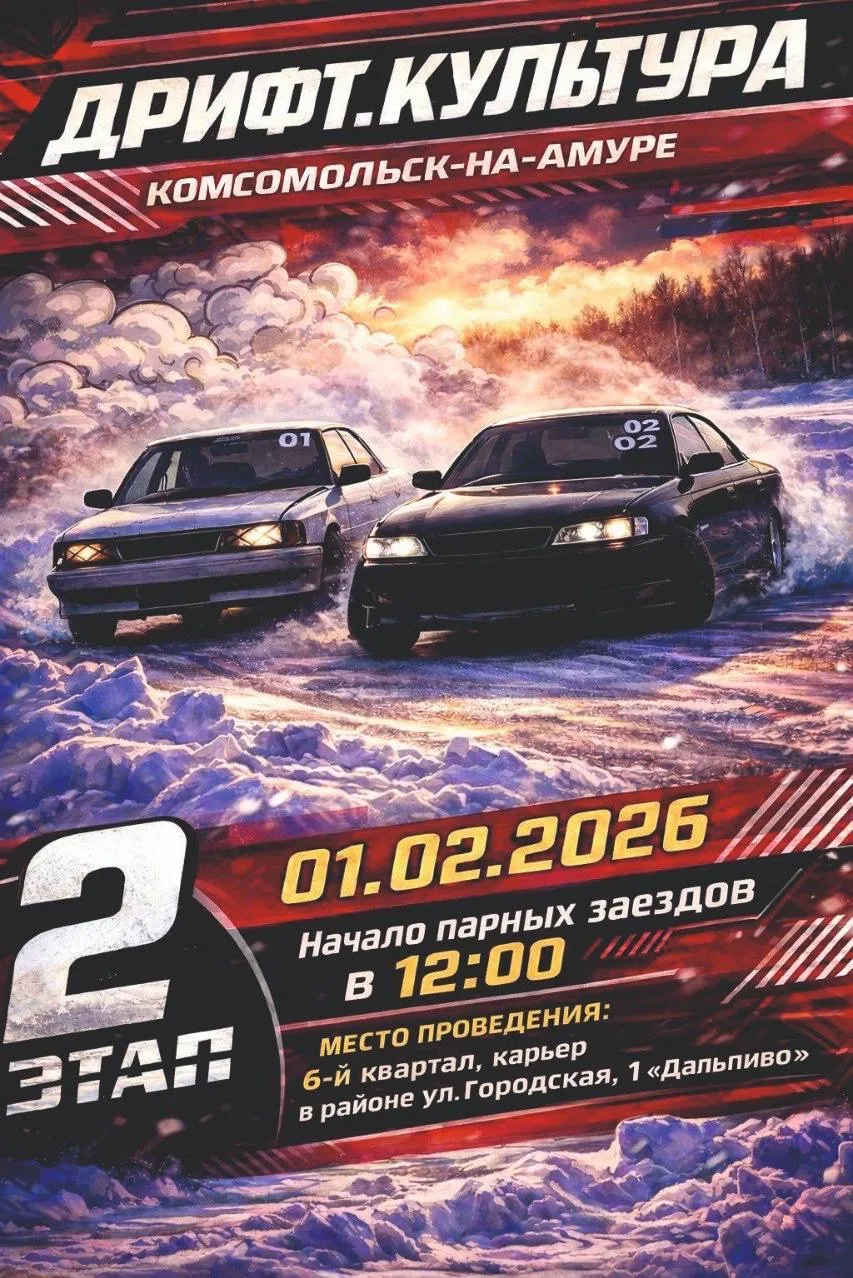 В воскресенье 1 февраля пройдет II этап соревнований по зимнему дрифту