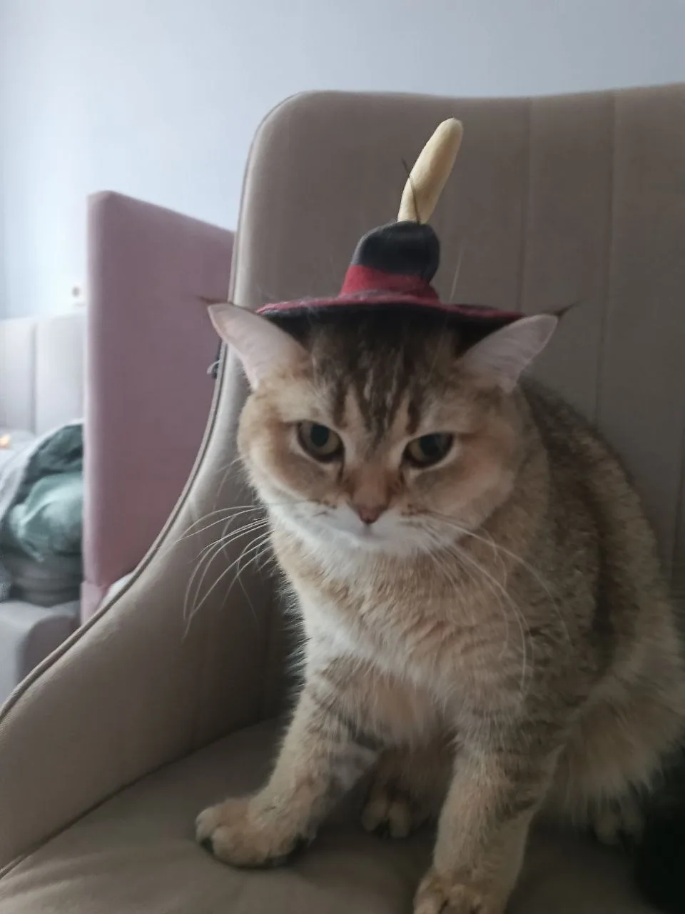 Знакомьтесь, это котек с усами на голова. Да, он тоже рад вас видеть😉
