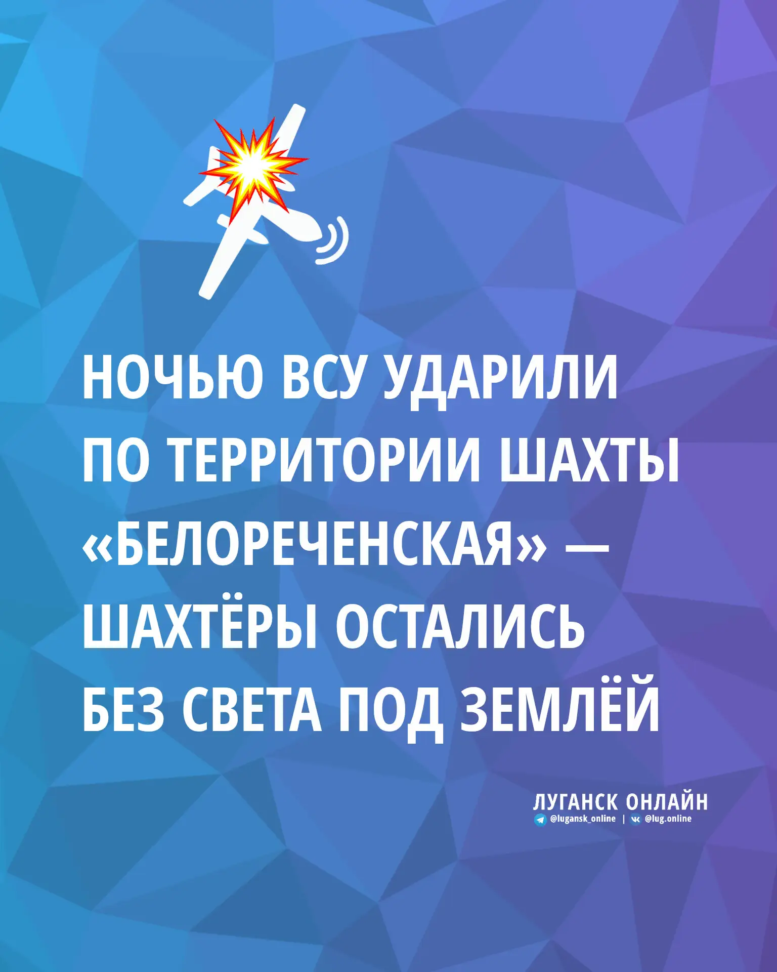 💥 Ночью ВСУ ударили по территории шахты «Белореченская» — шахтёры остались без света под землёй.