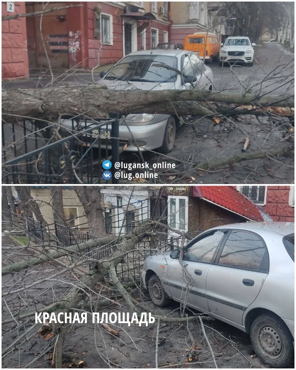 ⚠️ В Луганске сильные порывы ветра. Падают деревья и ветки. Не ставьте авто под деревьями!