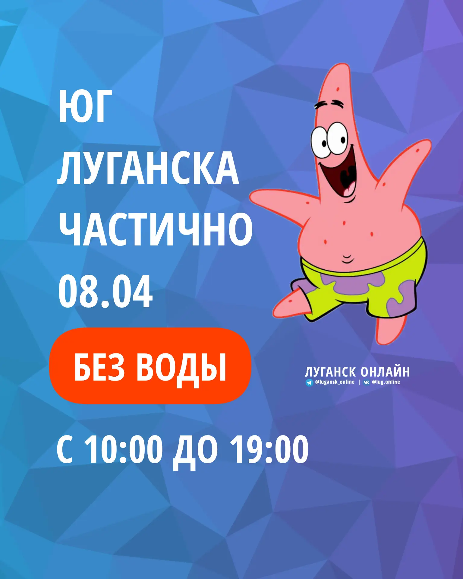 ❌💦 08.04.26 ориентировочно с 10:00 до 19:00, будет прекращена подача воды: