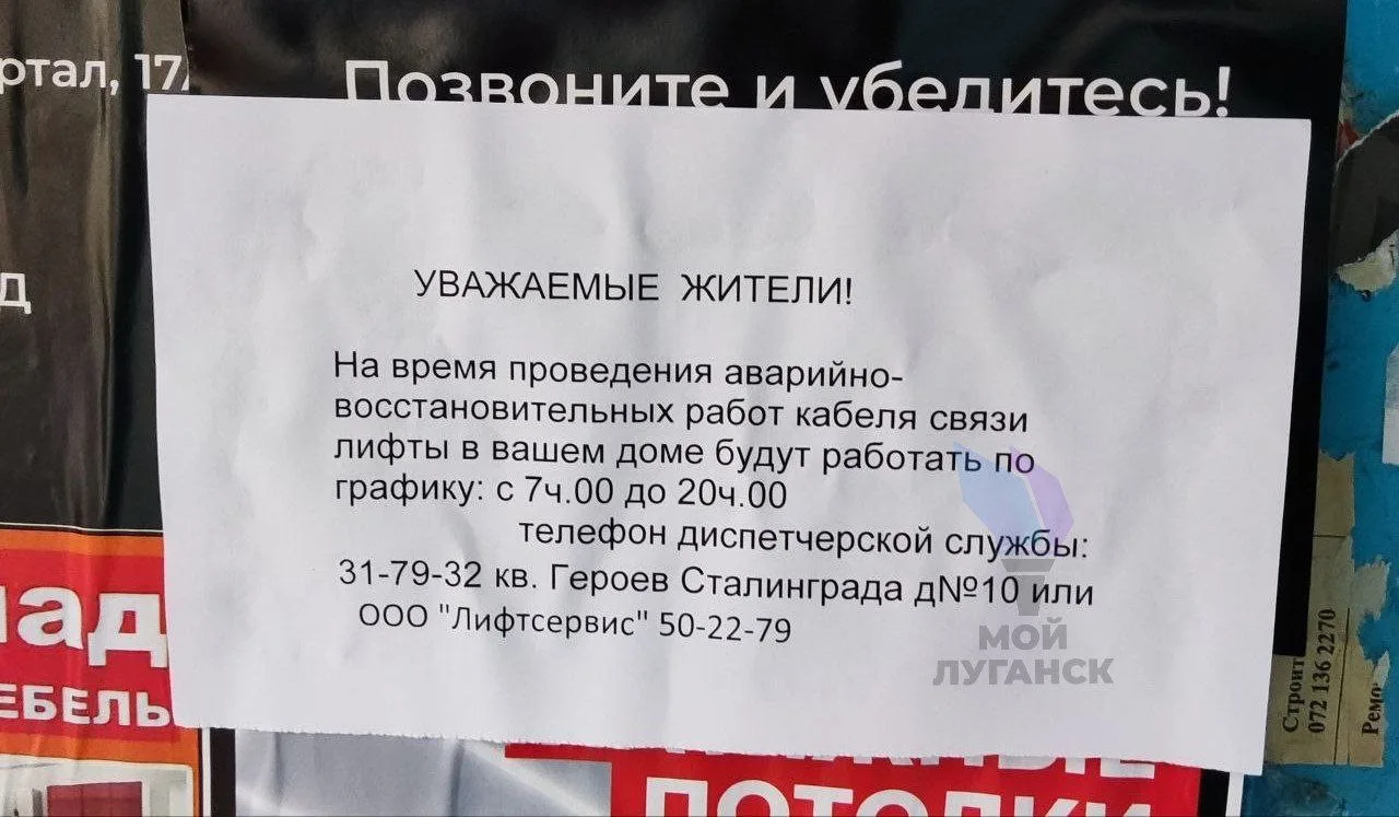 Возле подъезда несколько дней назад разместили объявление о работе лифтов с 7.00 до 20.00,но оно не соответствует действительности.