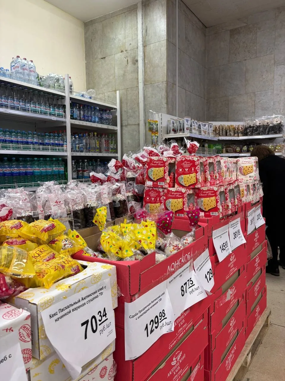 На полках стоят как классические куличи по традиционным рецептам, так и варианты с изюмом, цукатами и праздничной посыпкой 🥰