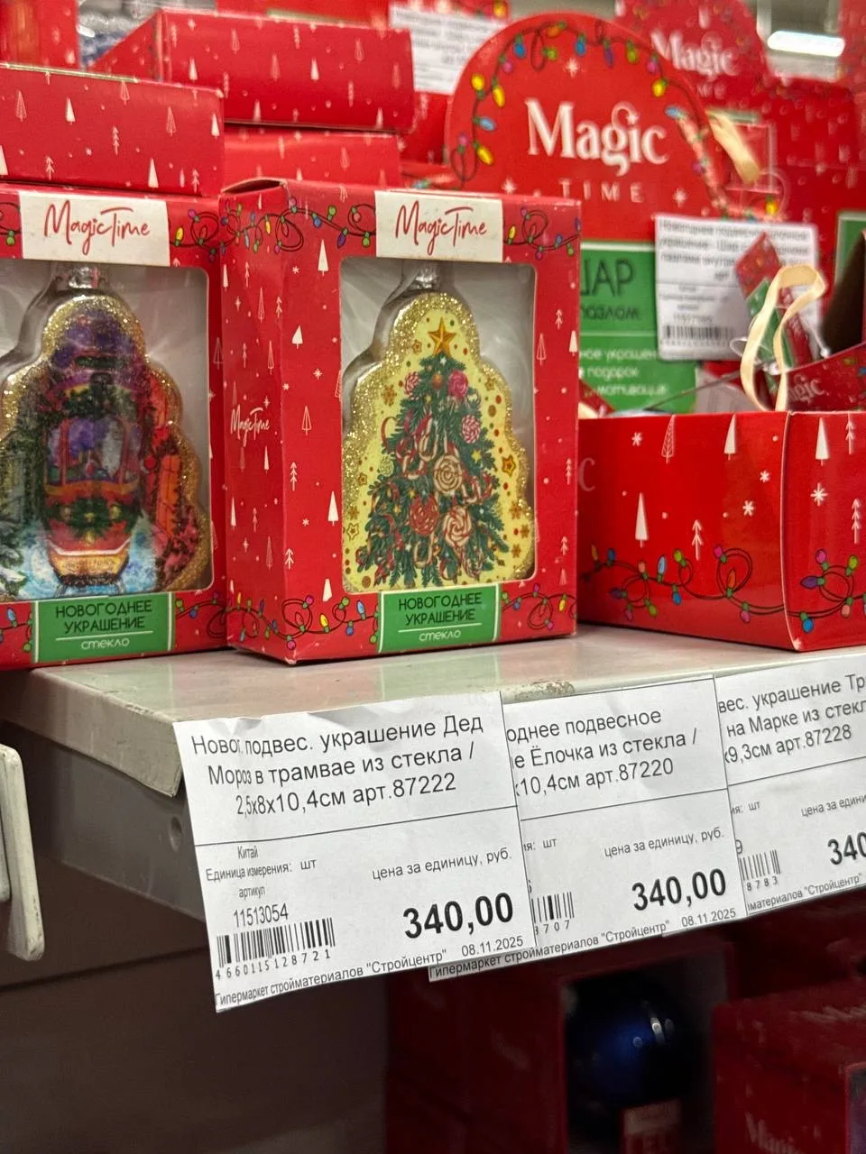 Заодно посмотрим, какие ценники выставлены на новогодний декор.
