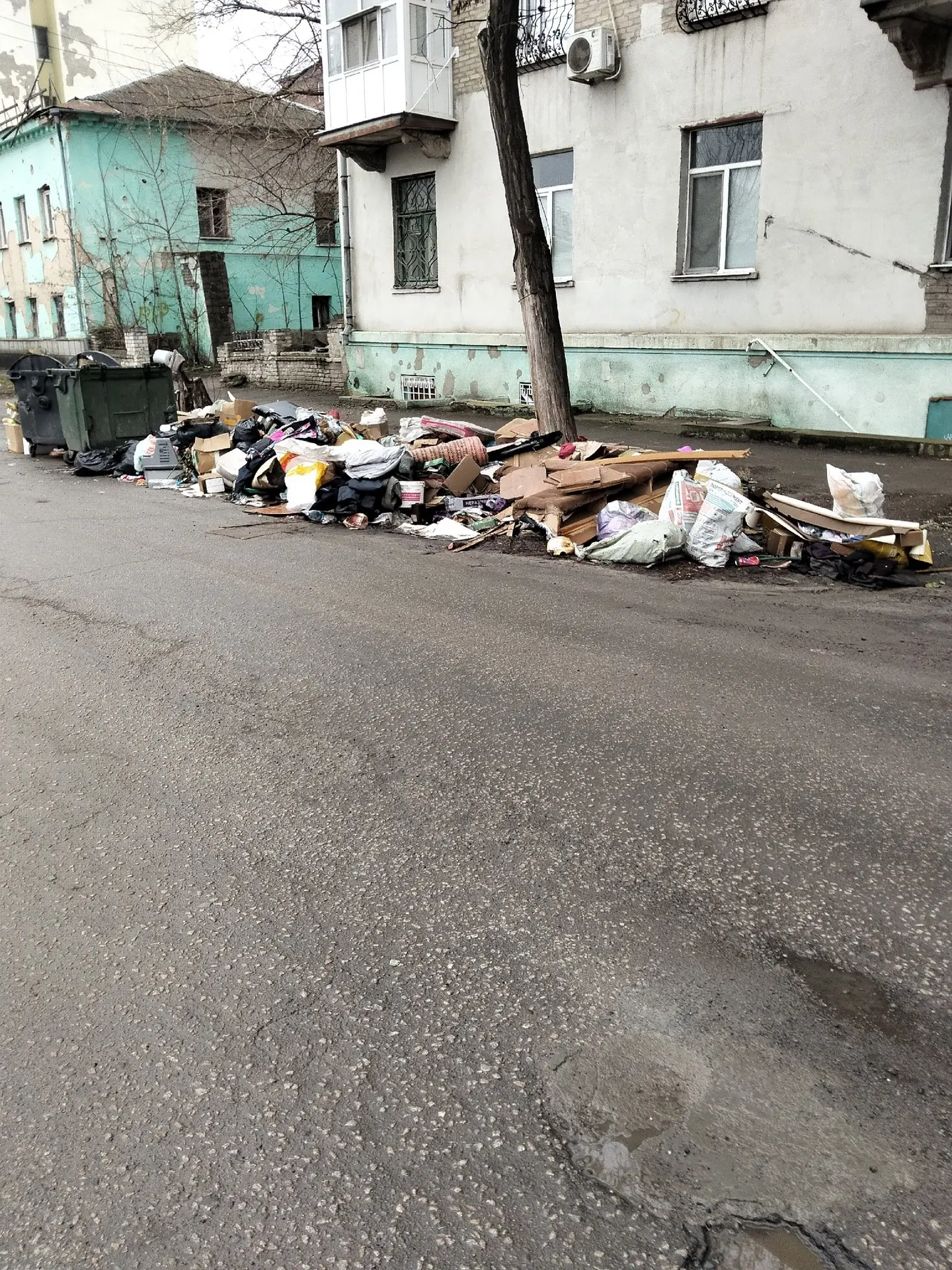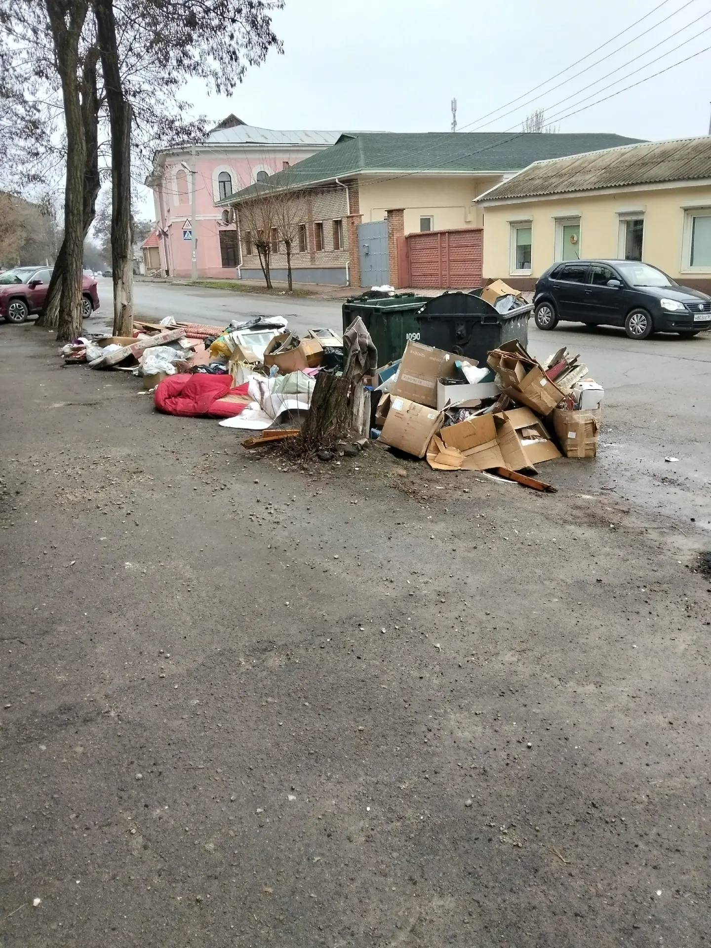 По ул. Ленина, возле дома "пионеров" устроили свалку, бачки стоят на дороге и все на машинах останавливаются и бросают, уберите эти бачки с дороги, это будет постоянно.
