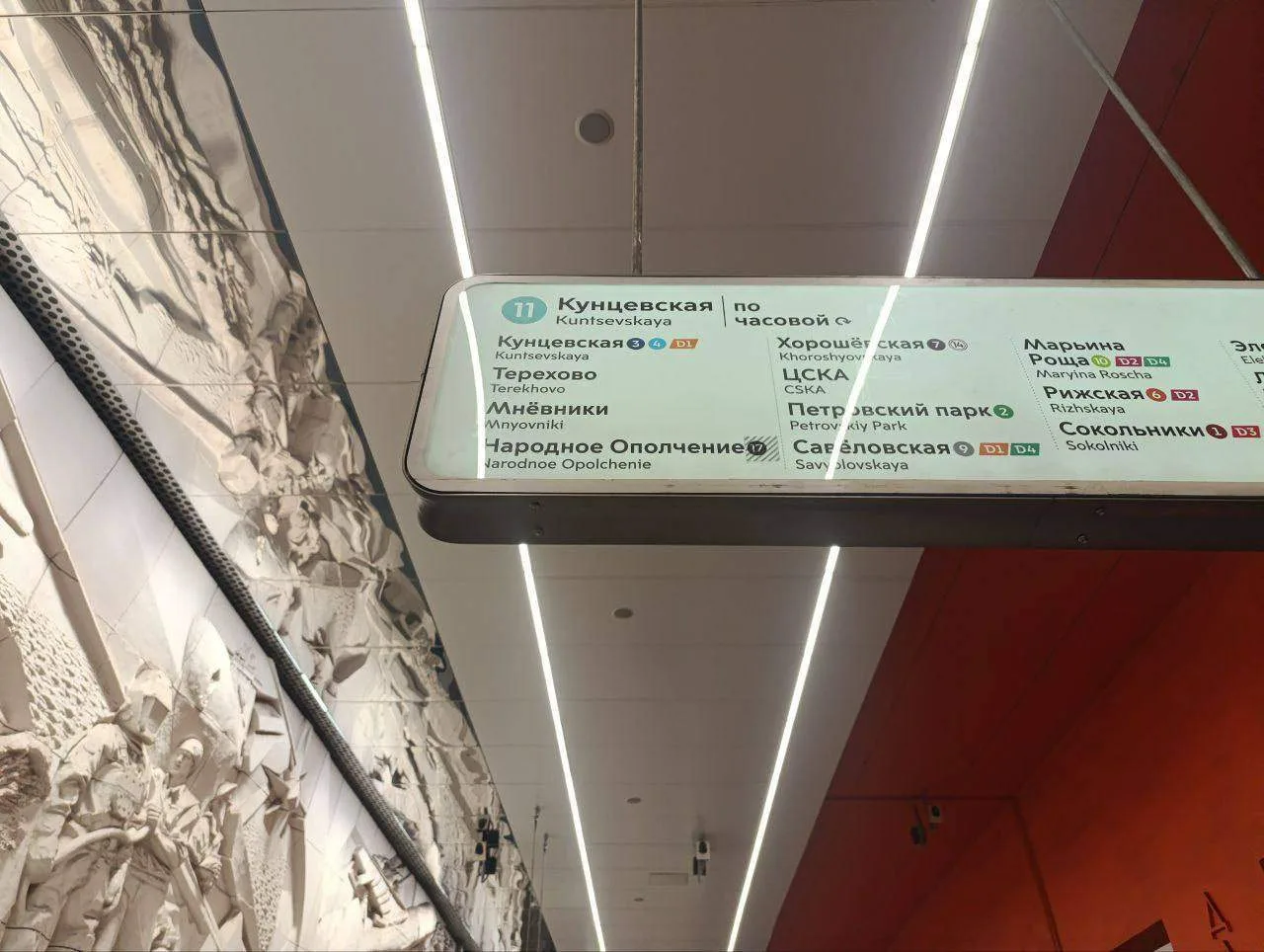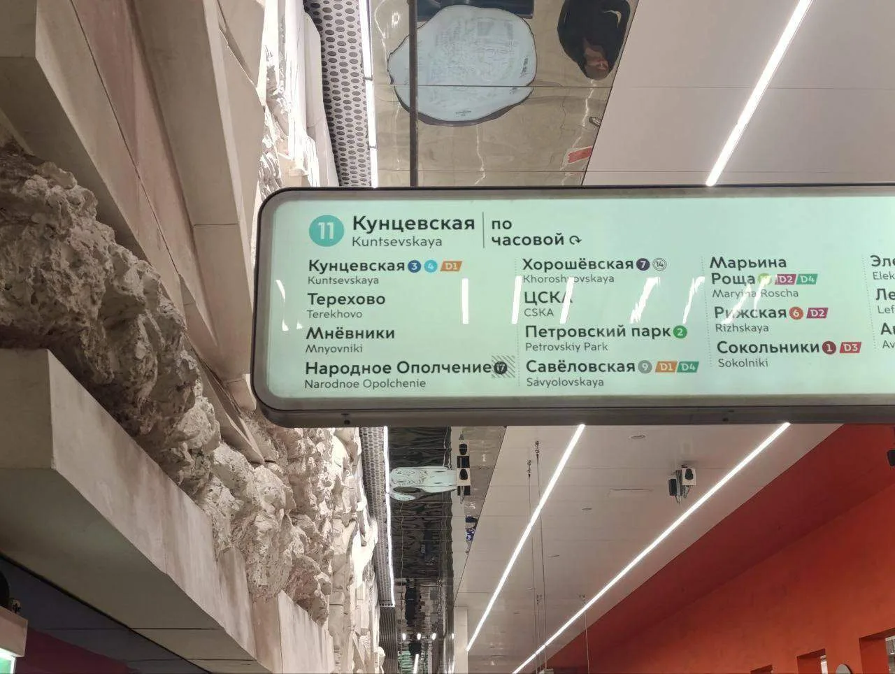 🚇 На указателях Большой кольцевой линии (БКЛ) уже появляются обозначения пересадки на Рублёво‑Архангельскую линию — там, где сейчас идёт строительство станции «Новорижская».